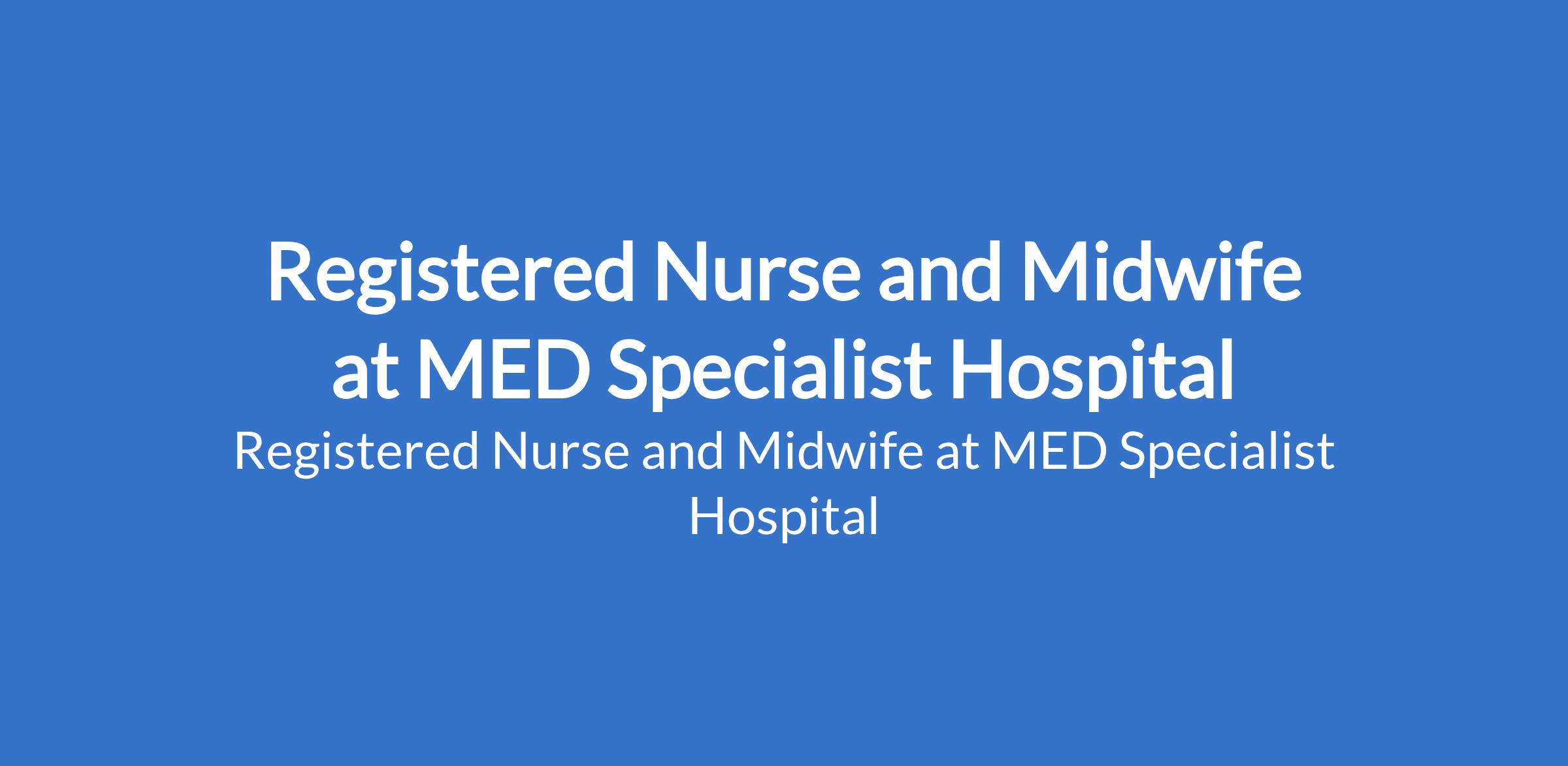 MED Specialist Hospital is recruiting to fill the position of: Registered Nurse and Midwife. The position is located in Mowe, Ogun State. Interested candidates should must hold a current practicing license from the Nursing and Midwifery Council of Nigeria (NMCN) with a minimum of one (1) year of hospital work experience, and must reside within Mowe, Lotto, and its environs.