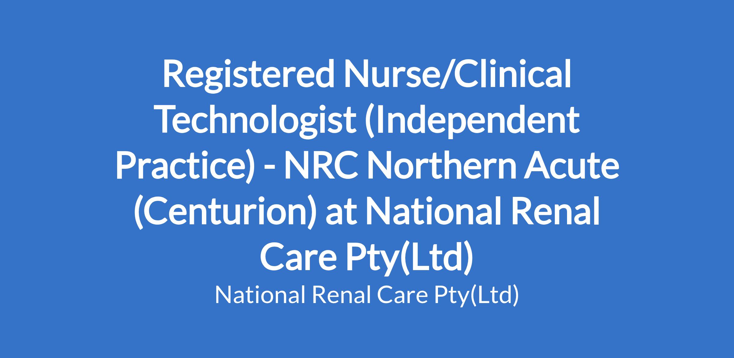Registered Nurse/Clinical Technologist (Independent Practice) - NRC Northern Acute (Centurion) at National Renal Care Pty(Ltd)
