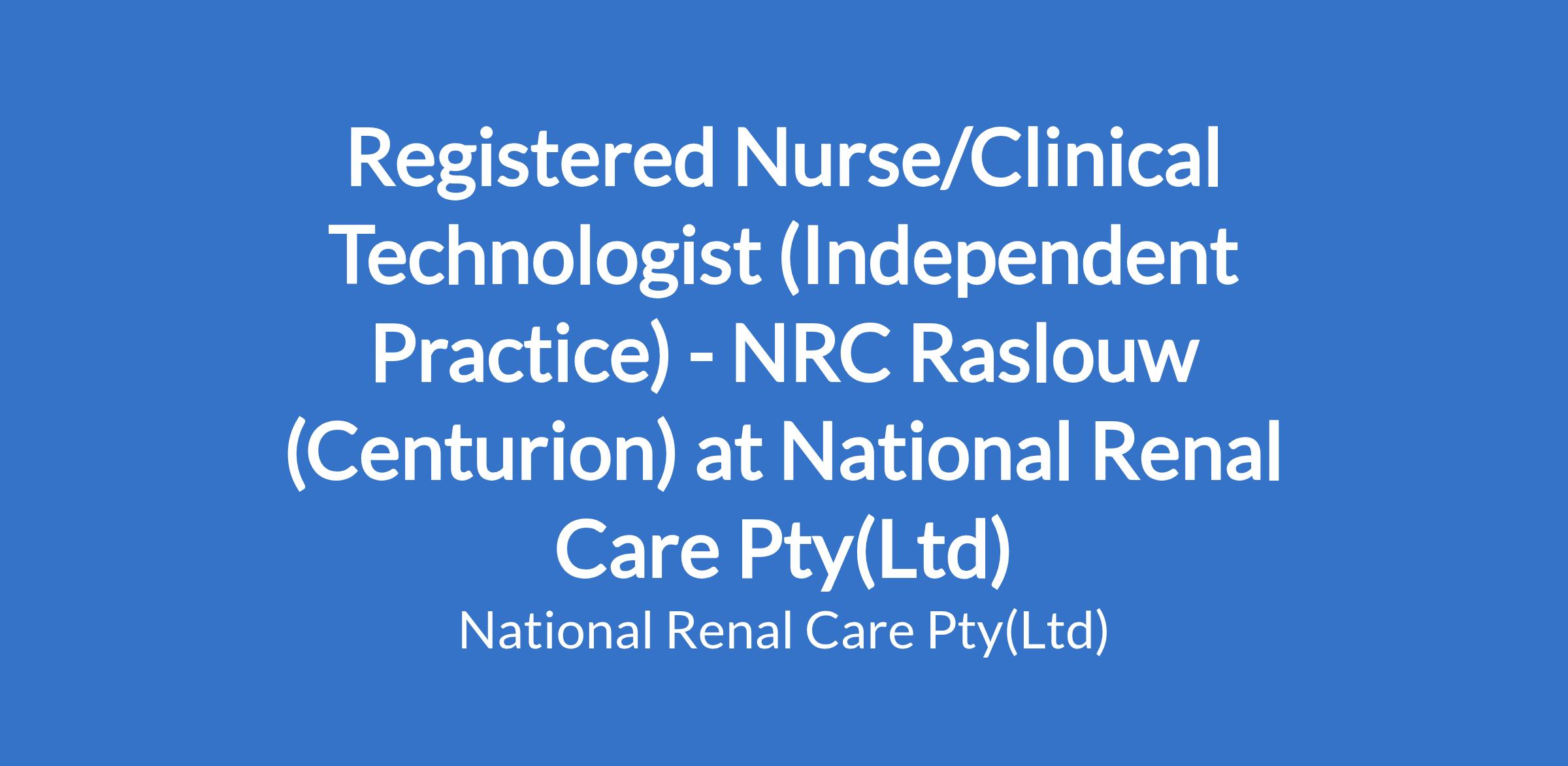 Registered Nurse/Clinical Technologist (Independent Practice) - NRC Raslouw (Centurion) at National Renal Care Pty(Ltd)