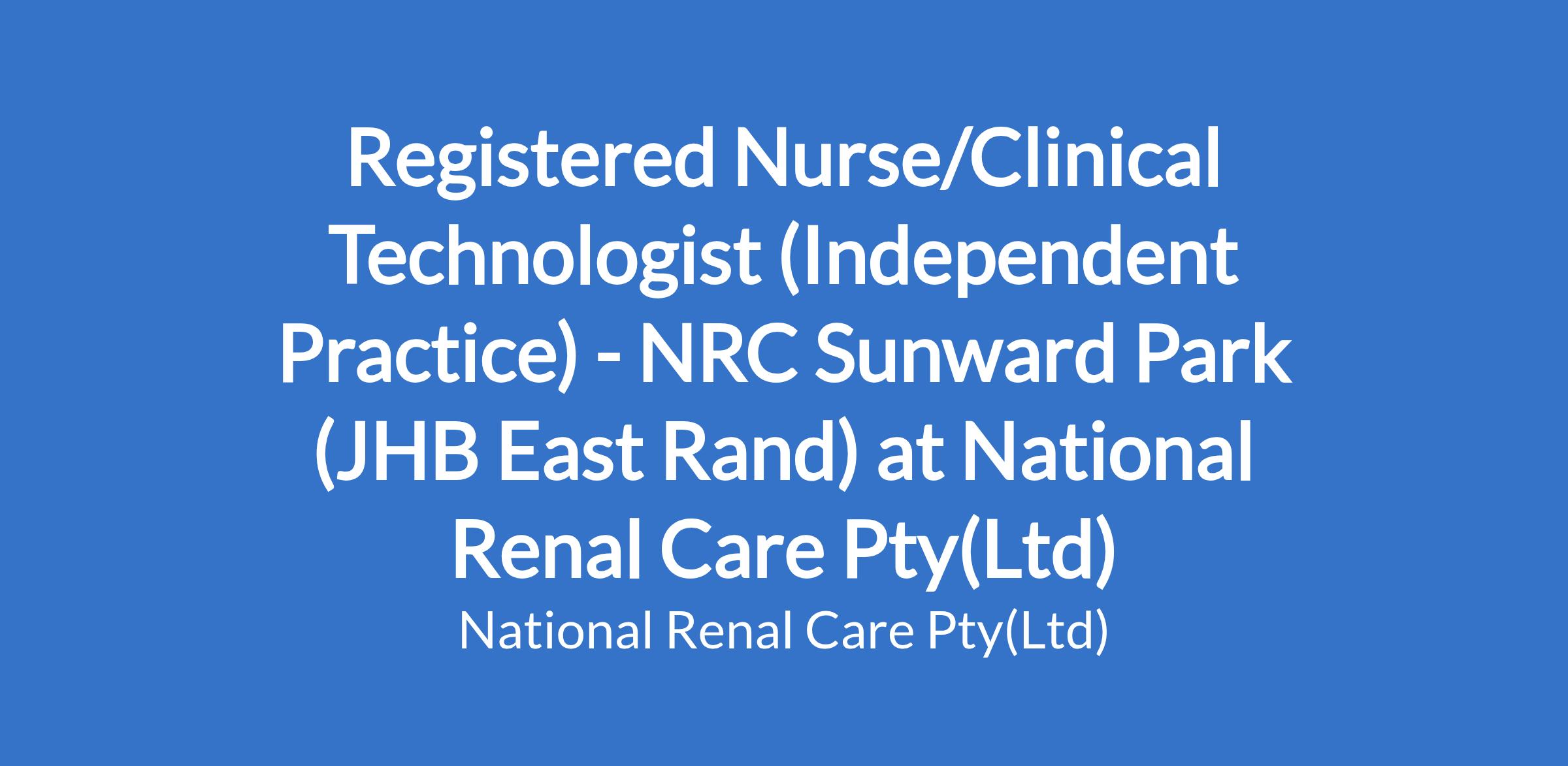 Registered Nurse/Clinical Technologist (Independent Practice) - NRC Sunward Park (JHB East Rand) at National Renal Care Pty(Ltd)
