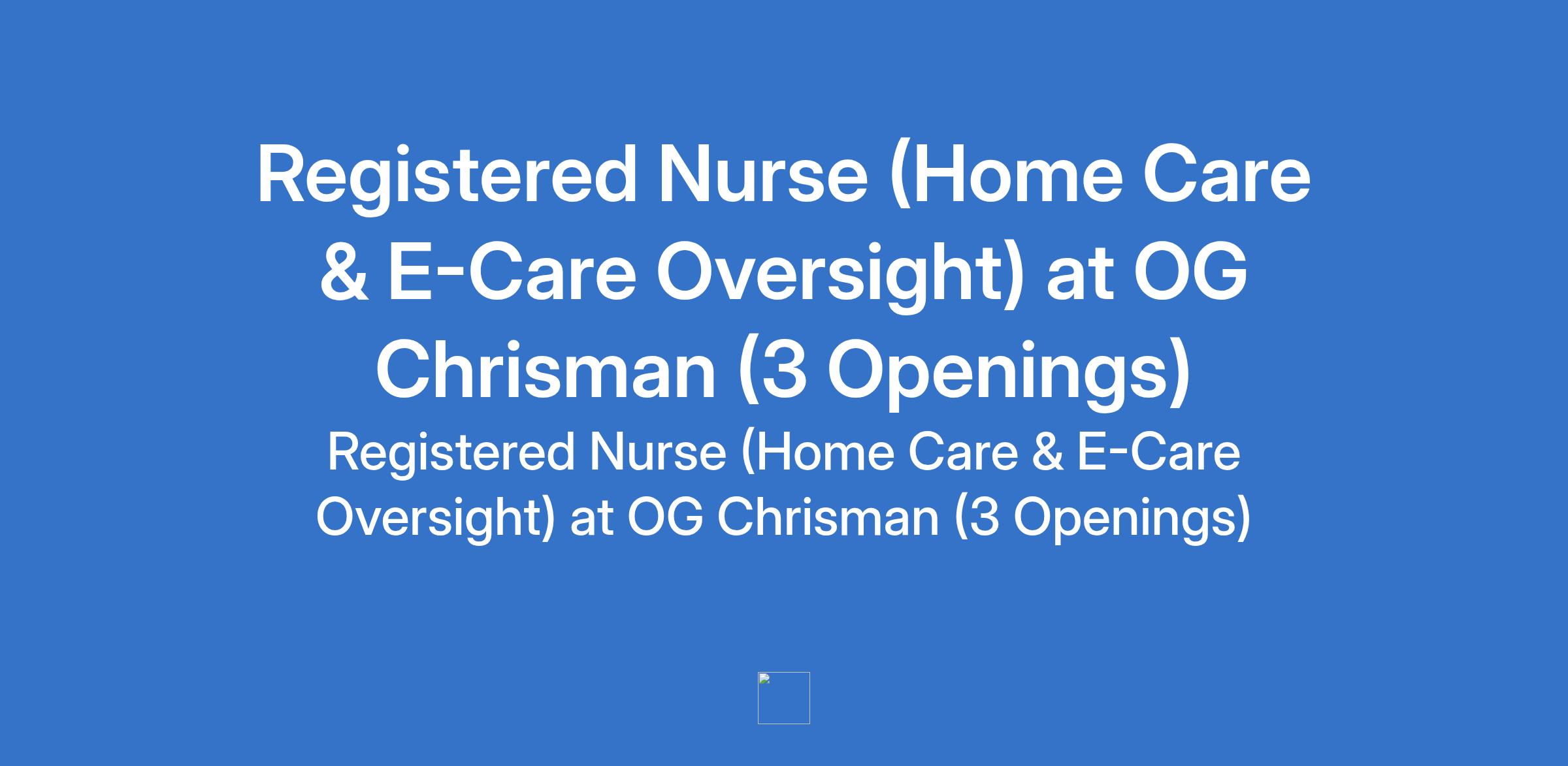 OG Chrisman is recruiting to fill the position of: Registered Nurse (Home Care & E-Care Oversight). The position is located in Abuja (FCT), Lagos, and Rivers States. Interested candidates should possess a Registered Nurse (RN) qualification with a valid Nursing and Midwifery Council of Nigeria (NMCN) license.