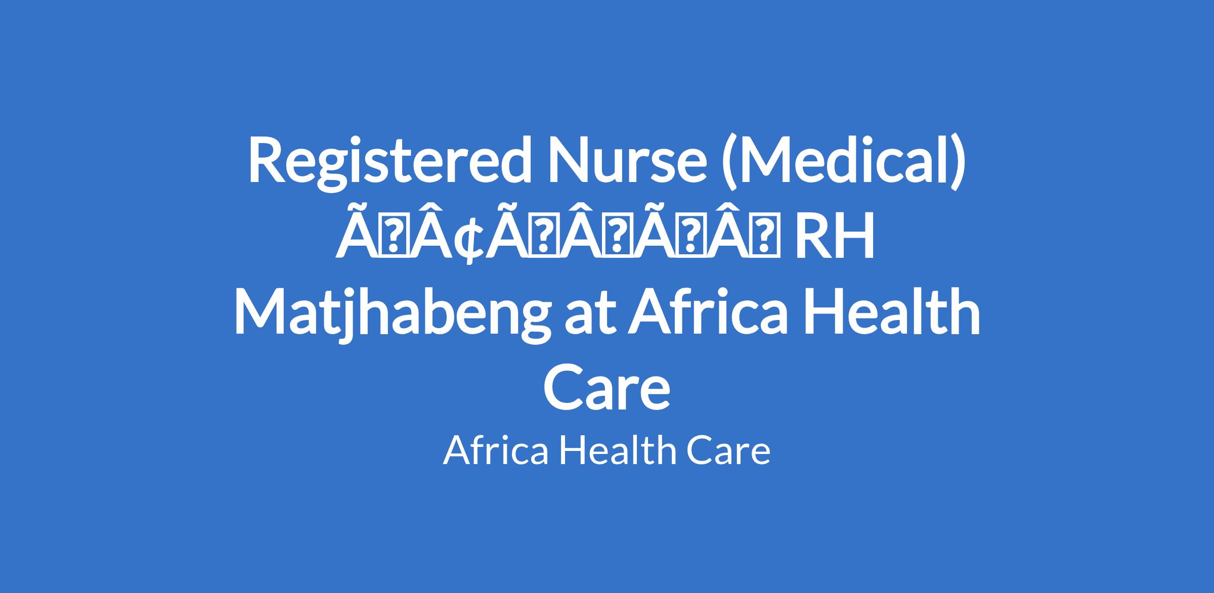 Registered Nurse (Medical) âÃÂàRH Matjhabeng at Africa Health Care