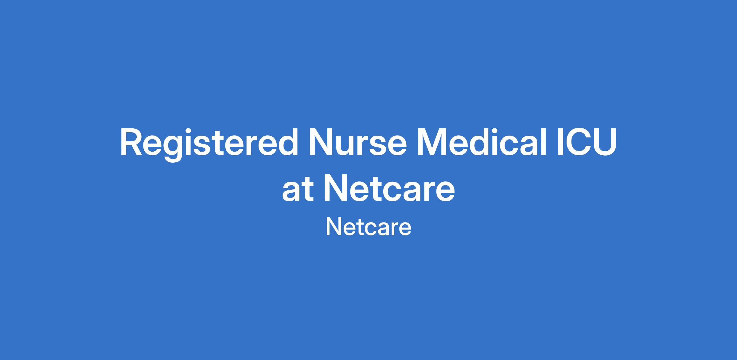Registered Nurse Medical ICU at Netcare