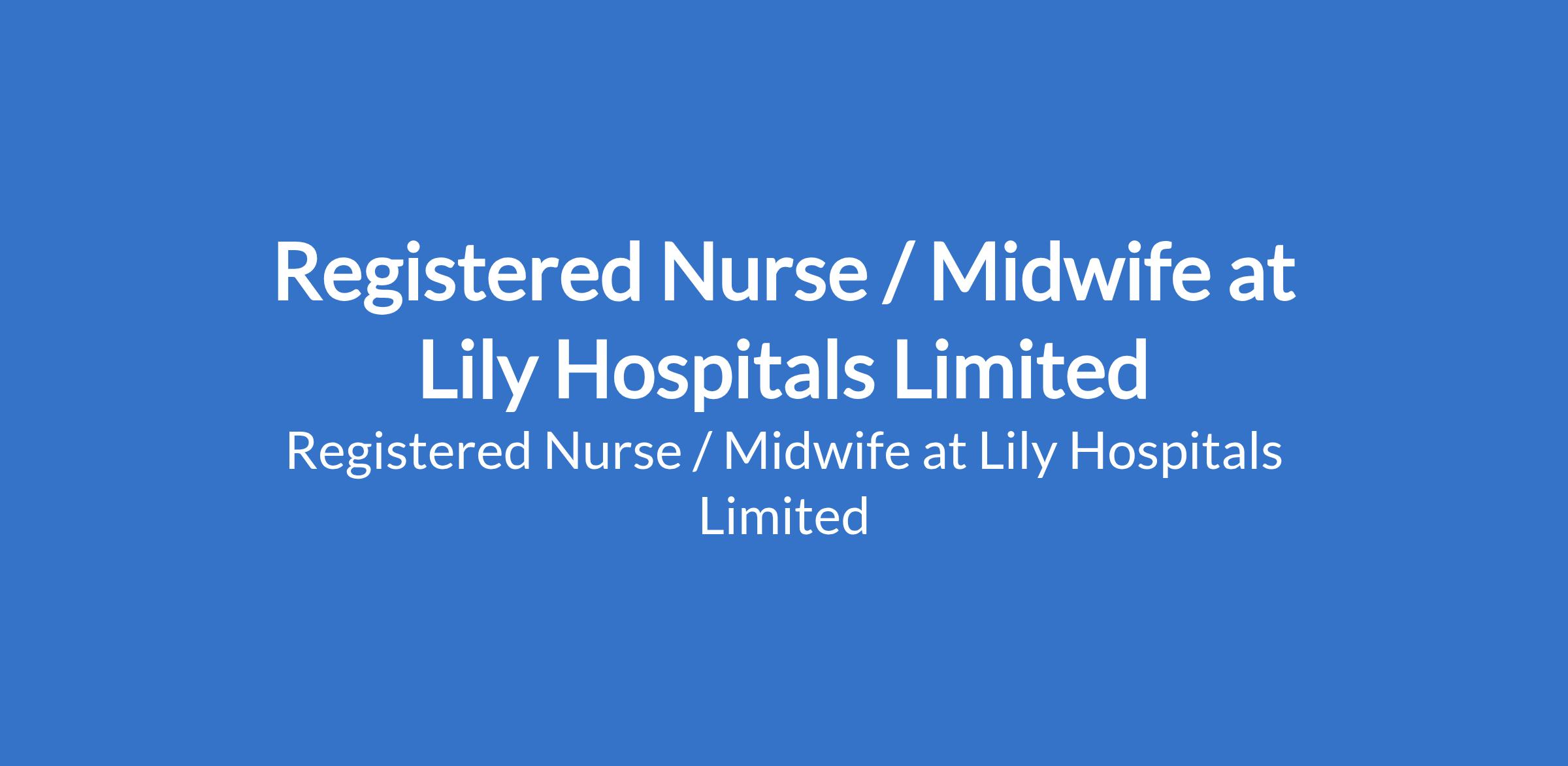 Lily Hospitals Limited is recruiting to fill the position of: Registered Nurse / Midwife. The position is located in Warri, Delta State. Interested candidates should possess a Registered Nurse or Registered Midwife qualification (RN/RM), a valid practicing license from the Nursing and Midwifery Council of Nigeria (NMCN) with a minimum of 1 year post-clinical experience.