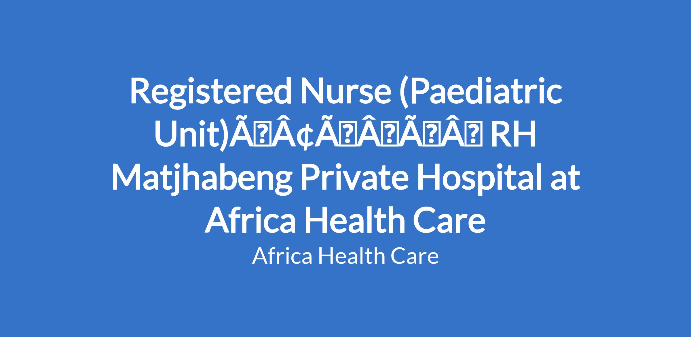 Registered Nurse (Paediatric Unit)âÃÂàRH Matjhabeng Private Hospital at Africa Health Care