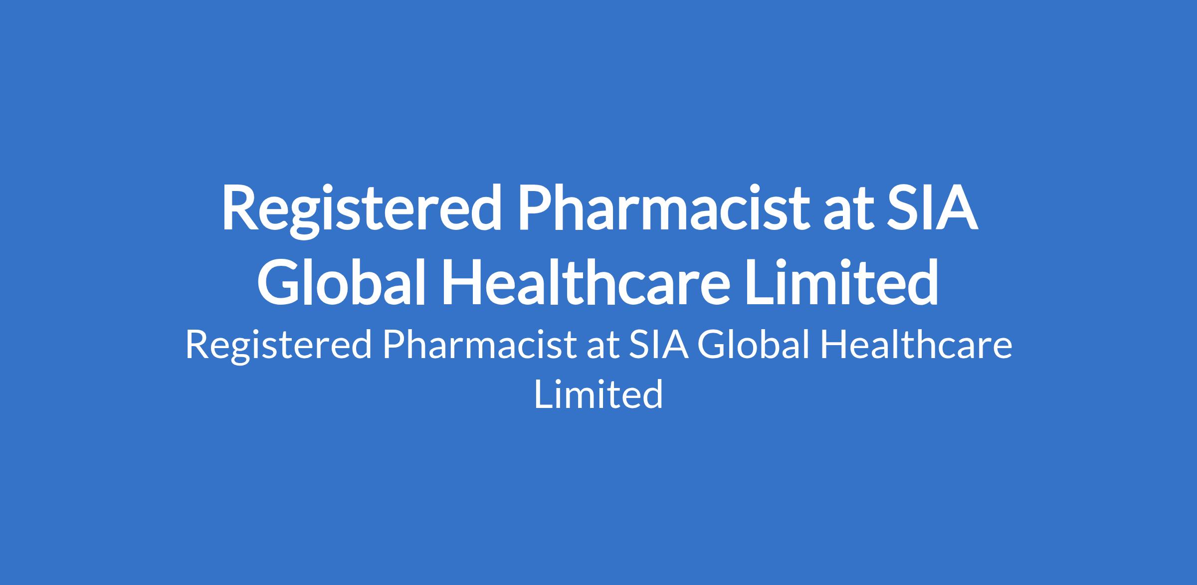 Registered Pharmacist at SIA Global Healthcare Limited