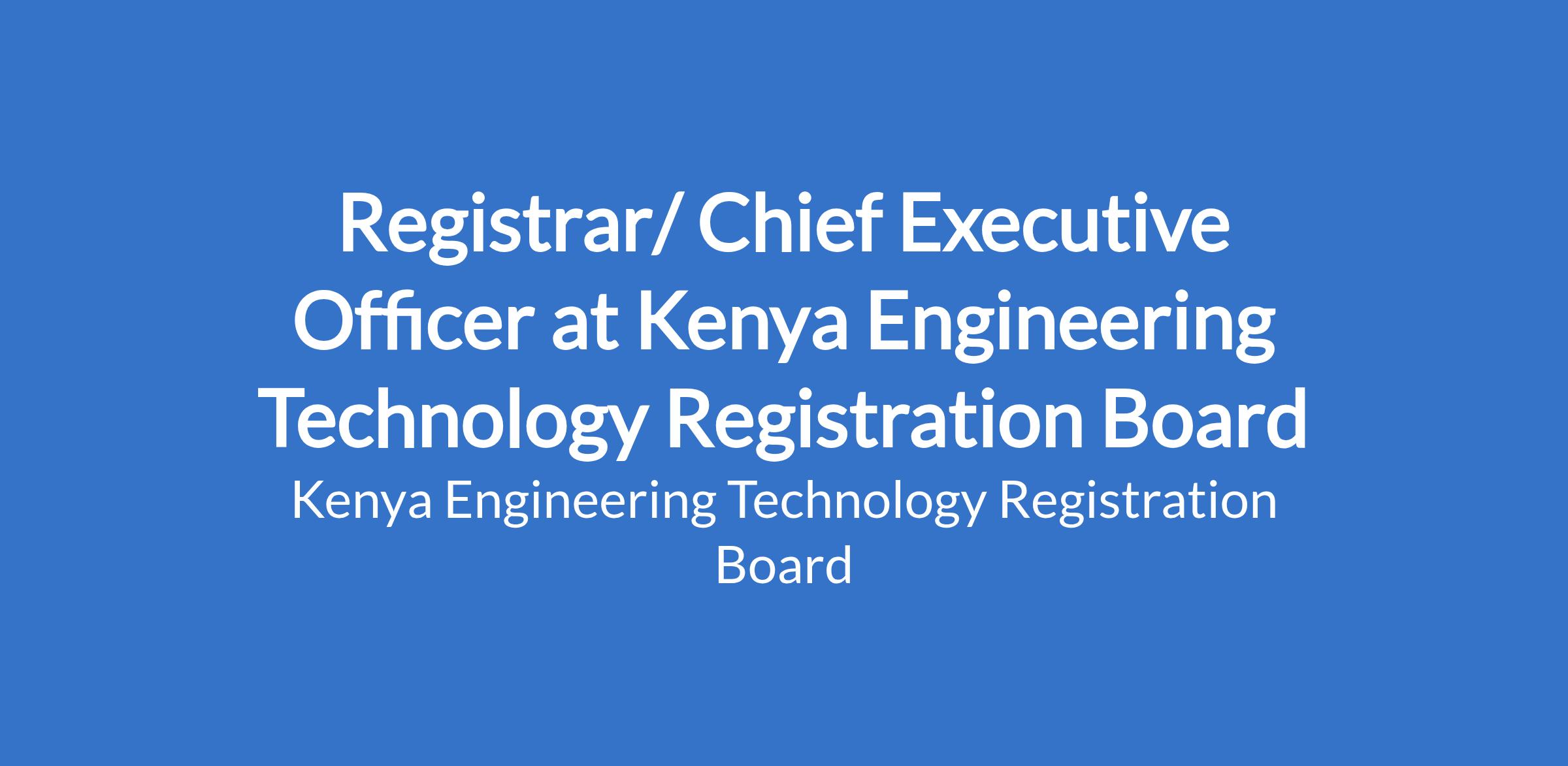 This is the senior most position in KETRB. The Registrar/CEO is answerable to the Board of Directors for the day-to-day management and co-ordination of activities and programs.
