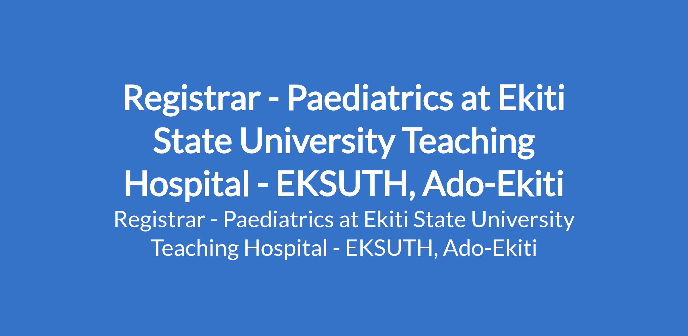 Ekiti State University Teaching Hospital (EKSUTH), Ado-Ekiti is recruiting to fill the position of: Registrar - Paediatrics. The position is located in Ekiti State. Interested candidates should possess an MBBS / MBChB / BDS qualification.