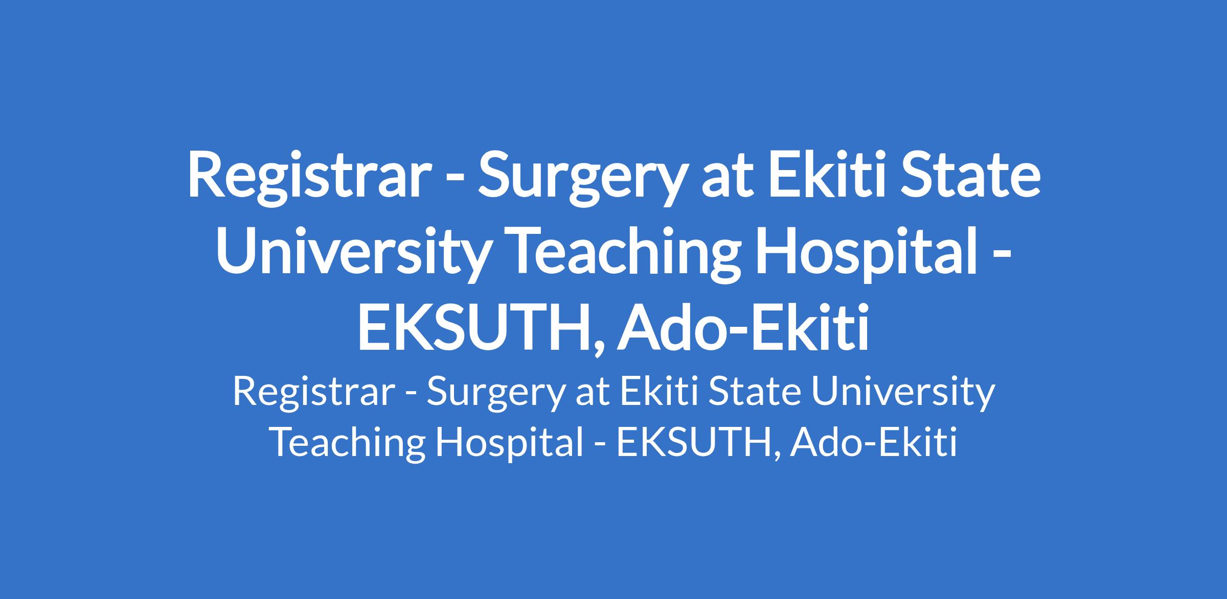 Registrar - Surgery at Ekiti State University Teaching Hospital - EKSUTH, Ado-Ekiti