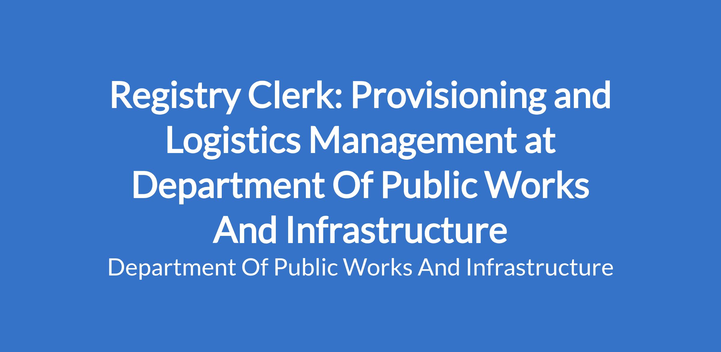 A minimum National Senior Certificate/ Grade 12. No experience required. Understanding of central registry environment. Completion of a Records Management or Archives course will be an added advantage. Understanding of records/ documents management, file plan, mail and courier service procedures.