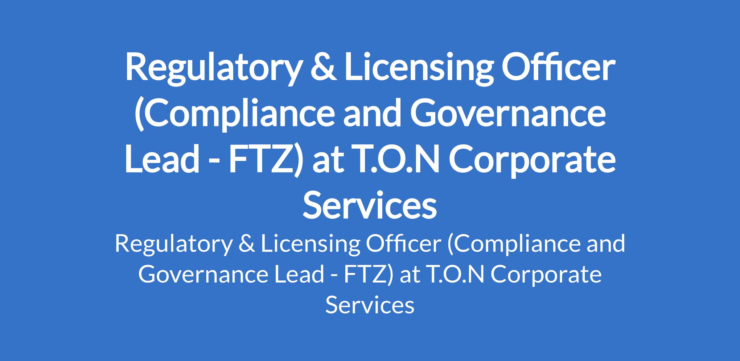 T.O.N Corporate Services is recruiting to fill the position of: Regulatory & Licensing Officer (Compliance and Governance Lead - FTZ). The position is located in Lagos State. Interested candidates should possess a Bachelors Degree in Law, Business Administration, Accounting, Finance, or a related field with a minimum of 5 years relevant experience in compliance, licensing, governance, or regulatory administration.
