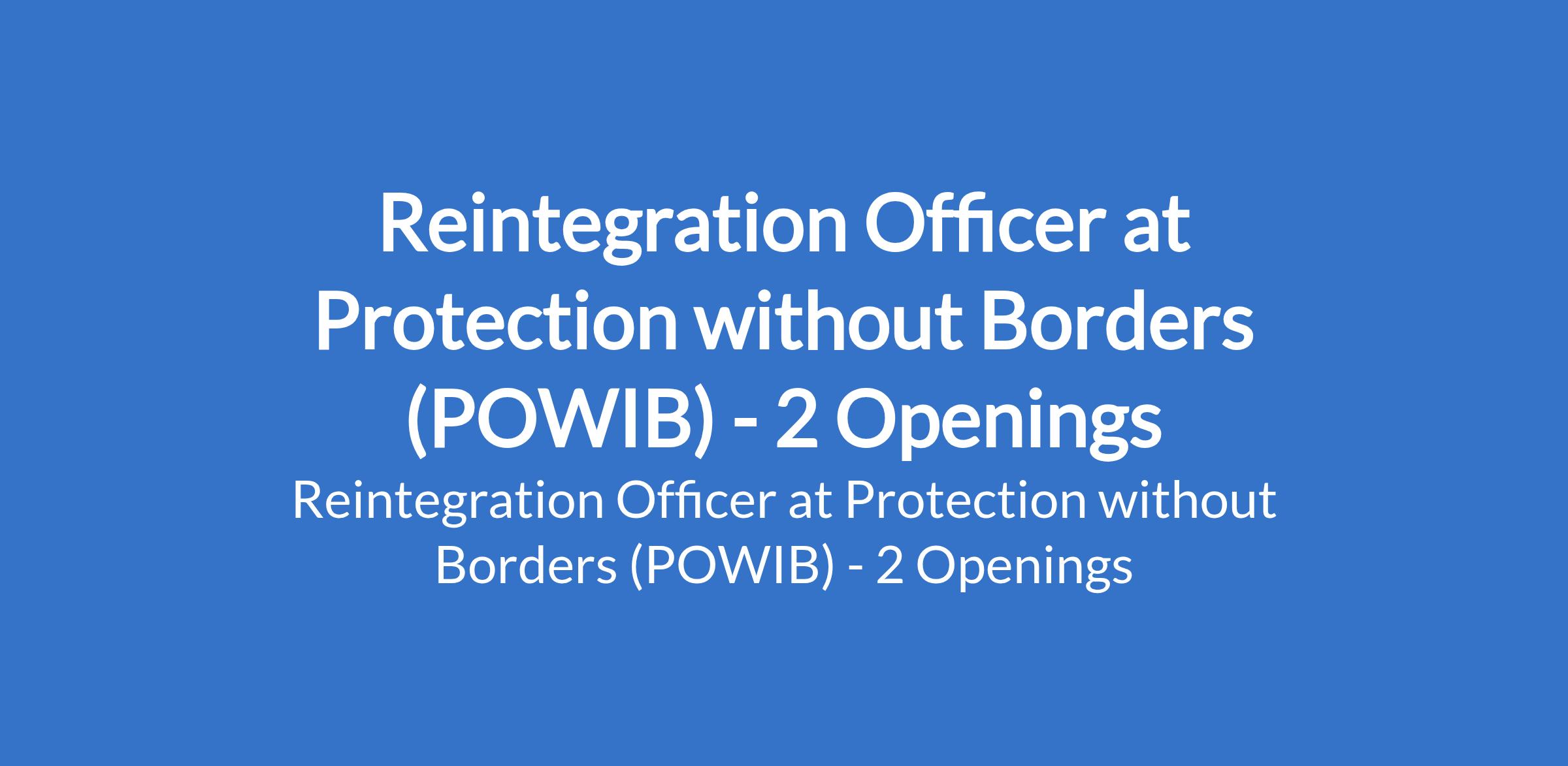 Reintegration Officer at Protection without Borders (POWIB) - 2 Openings