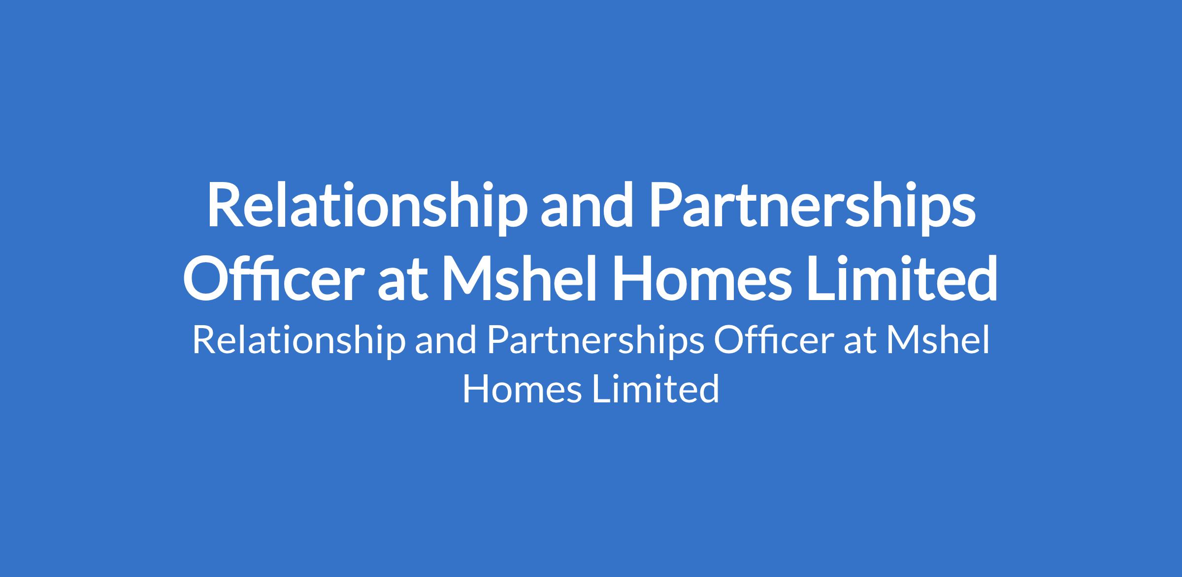 Mshel Homes Limited is recruiting to fill the position of: Relationship and Partnerships Officer. The position is located in Abuja. Salary: N250,000 - N300,000 monthly. Interested candidates should possess a Bachelors Degree in Business Administration, Marketing, Communications, or a related field with 2-4 years of proven experience in partnership management, business.