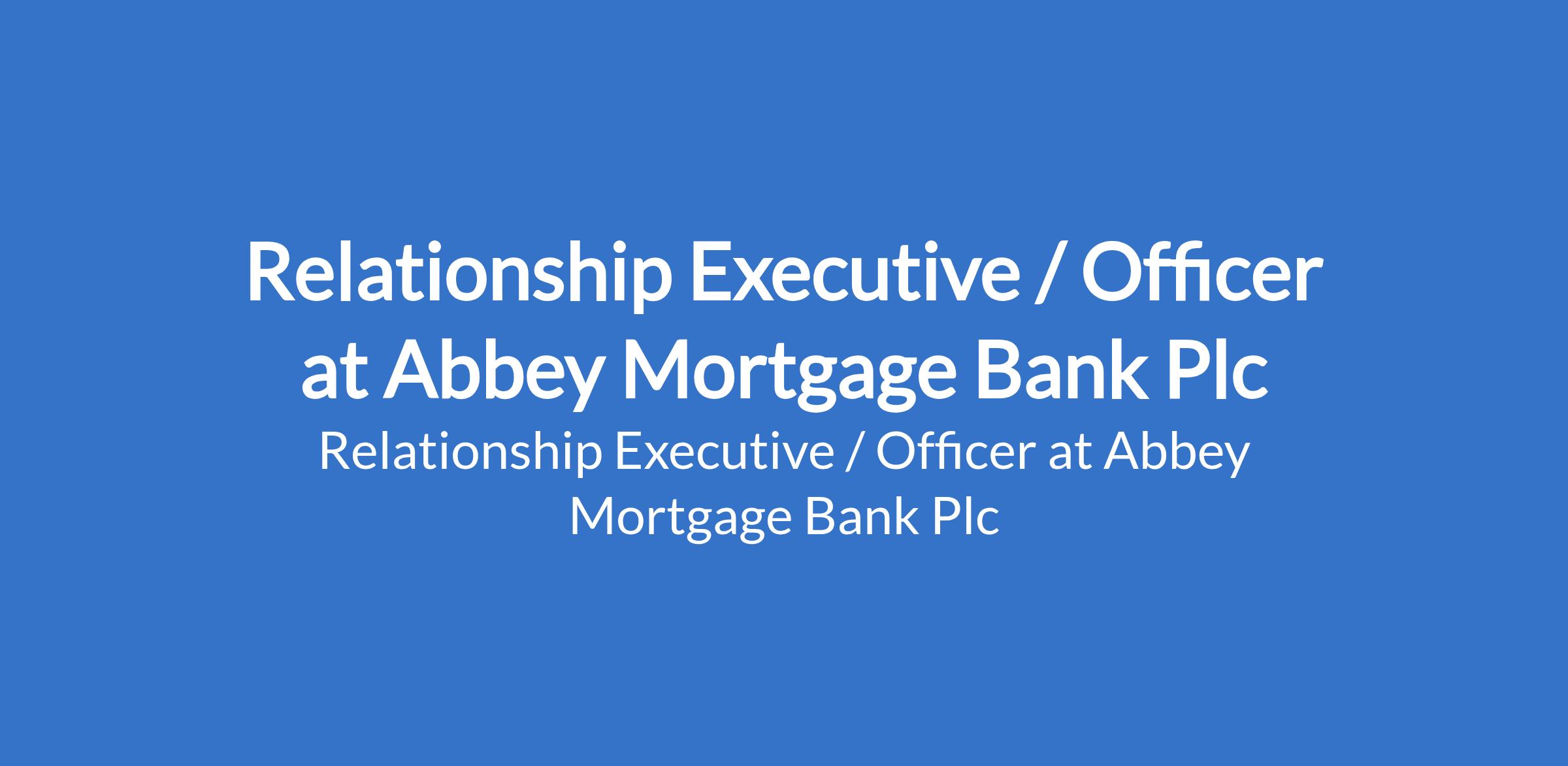Abbey Mortgage Bank Plc is recruiting to fill the position of: Relationship Executive / Officer. The position is located in Lagos State. Interested candidates should possess a minimum of Bachelor's Degree in Business Administration, Finance, Marketing, or a related field.