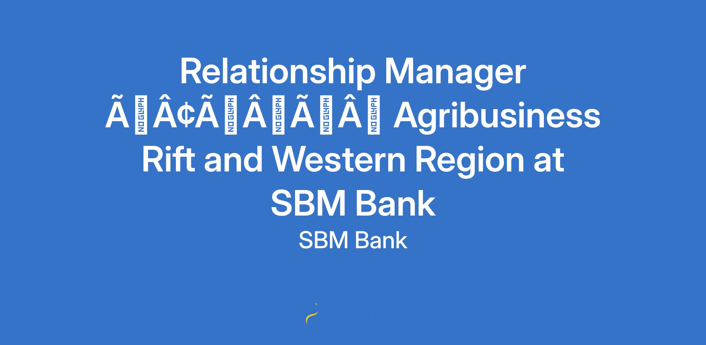 Relationship Manager âÃÂàAgribusiness Rift and Western Region at SBM Bank