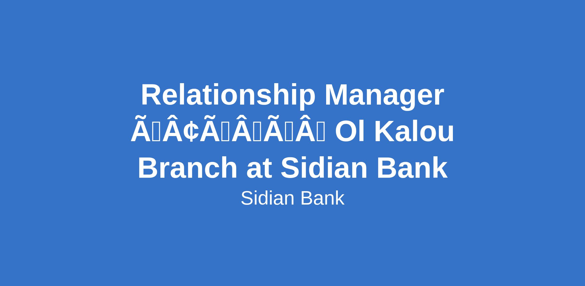 Relationship Manager âÃÂàOl Kalou Branch at Sidian Bank