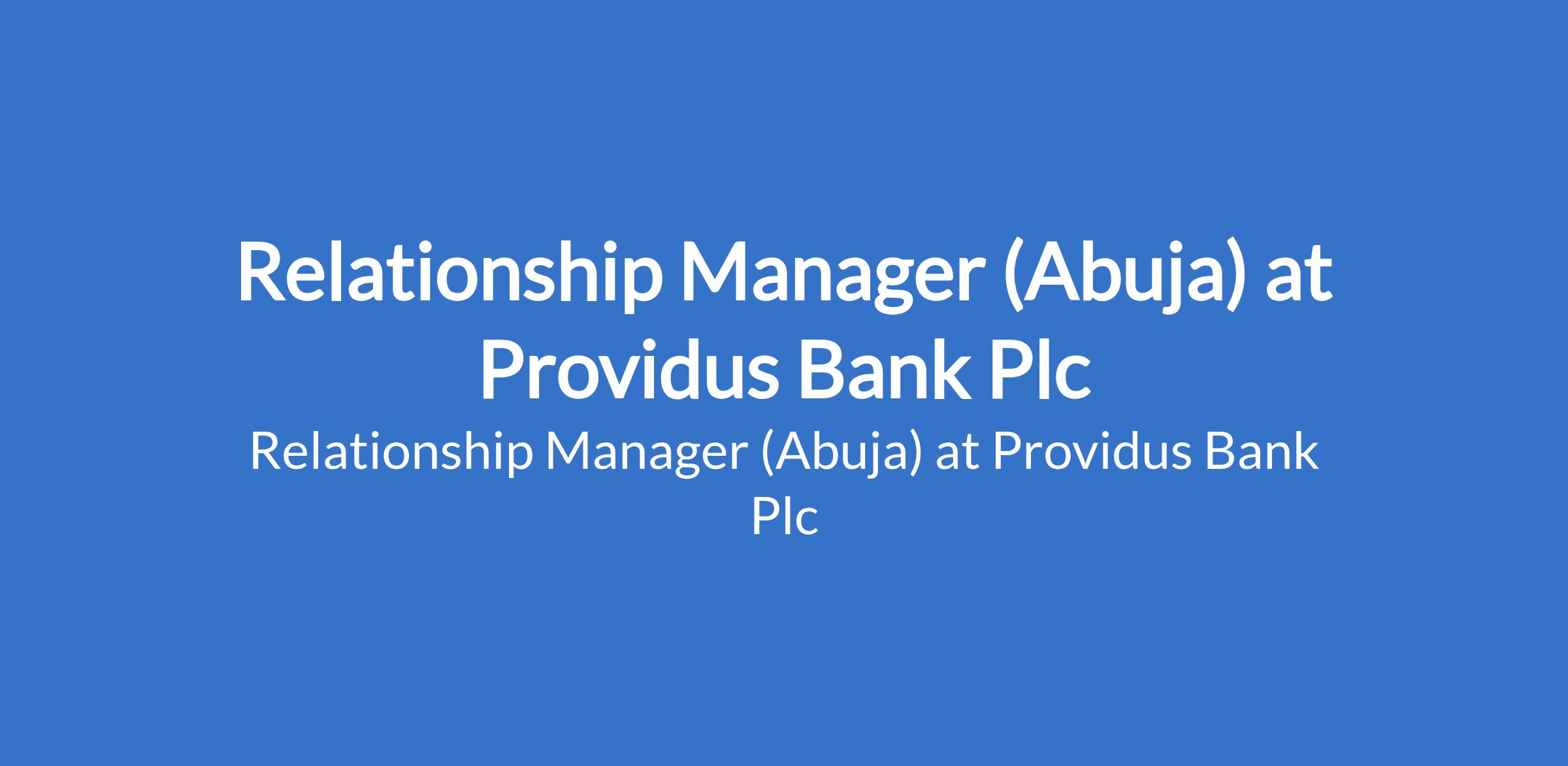 Providus Bank Plc is recruiting to fill the position of: Relationship Manager. The position is located in Abuja. Interested candidates should possess relevant qualifications with proven experience in financial services.