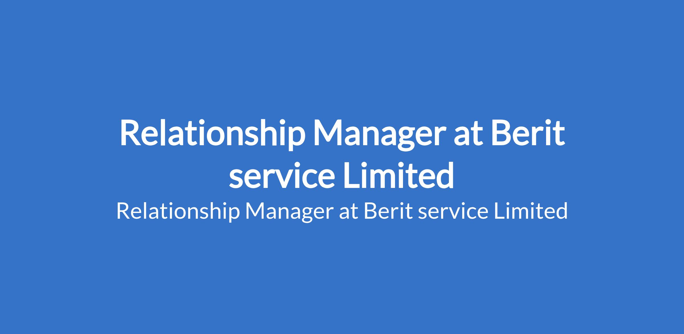 Berit service Limited is recruiting to fill the position of: Relationship Manager. The position is located in Lagos State. Salary: N150,000 - N250,000 monthly. The ideal candidate will be well-versed in departmental procedures and policies and will be able to actively discover new ways to do the job more efficiently.