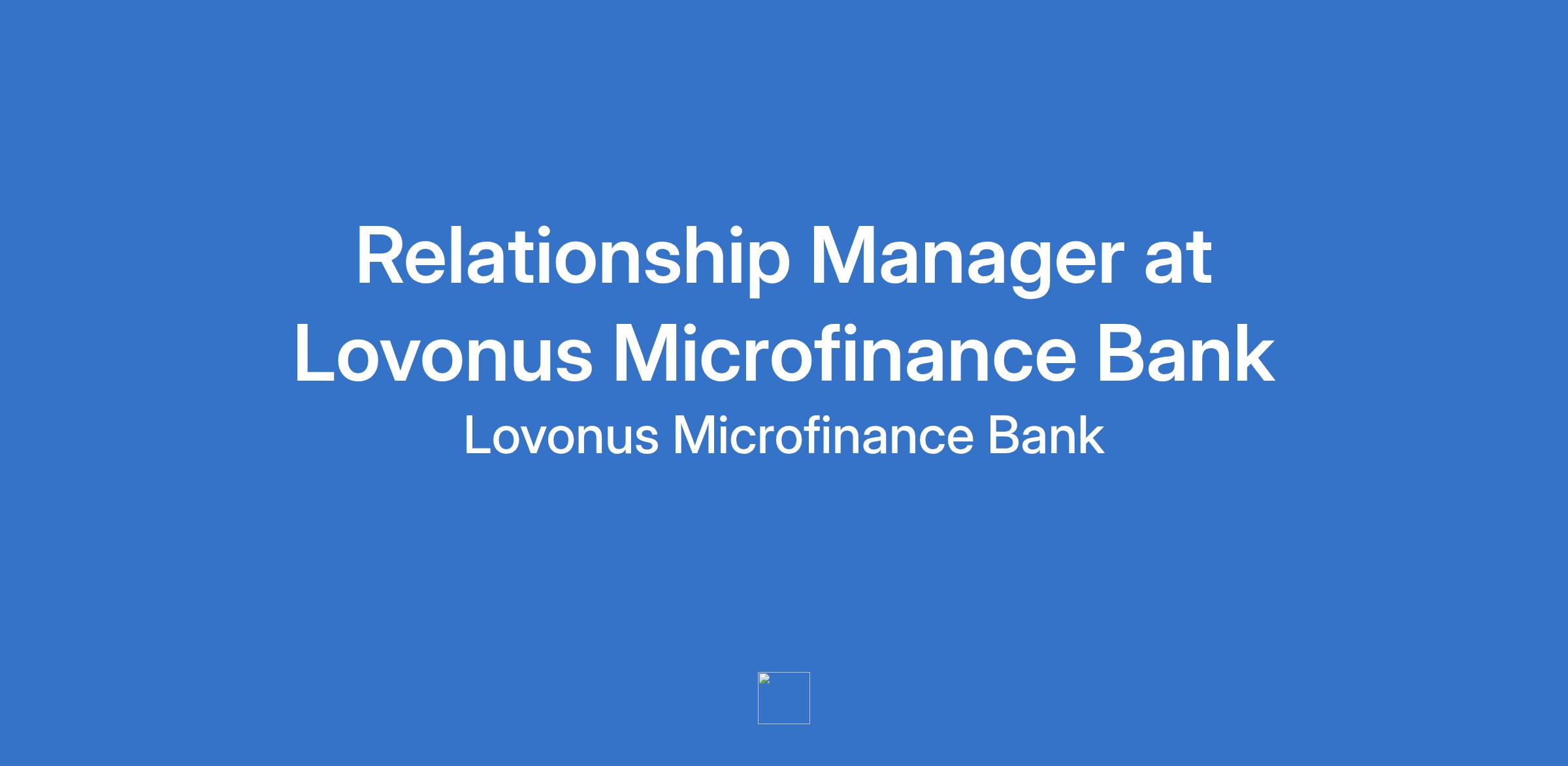 Relationship Manager at Lovonus Microfinance Bank