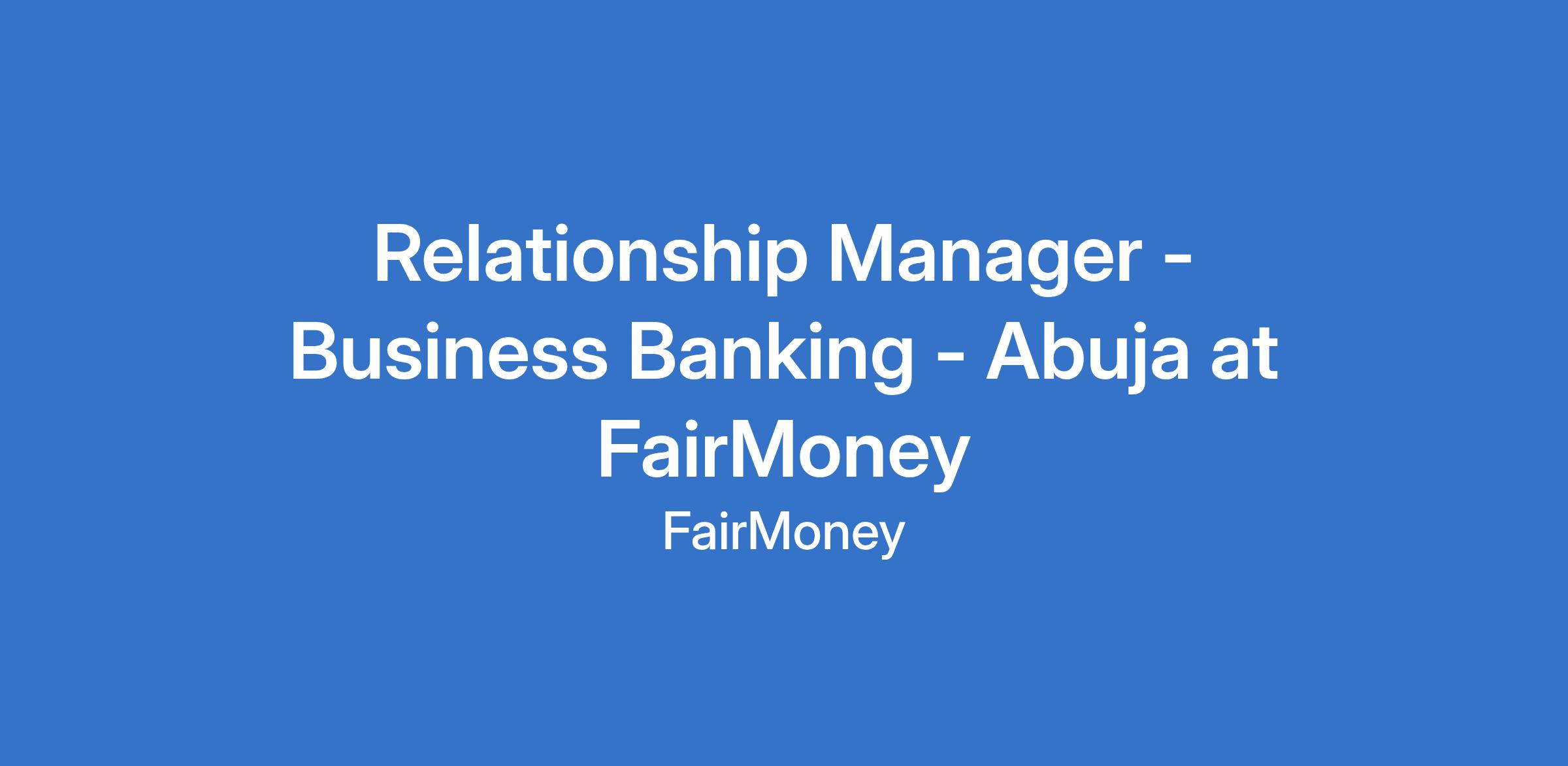 Relationship Manager - Business Banking - Abuja at FairMoney