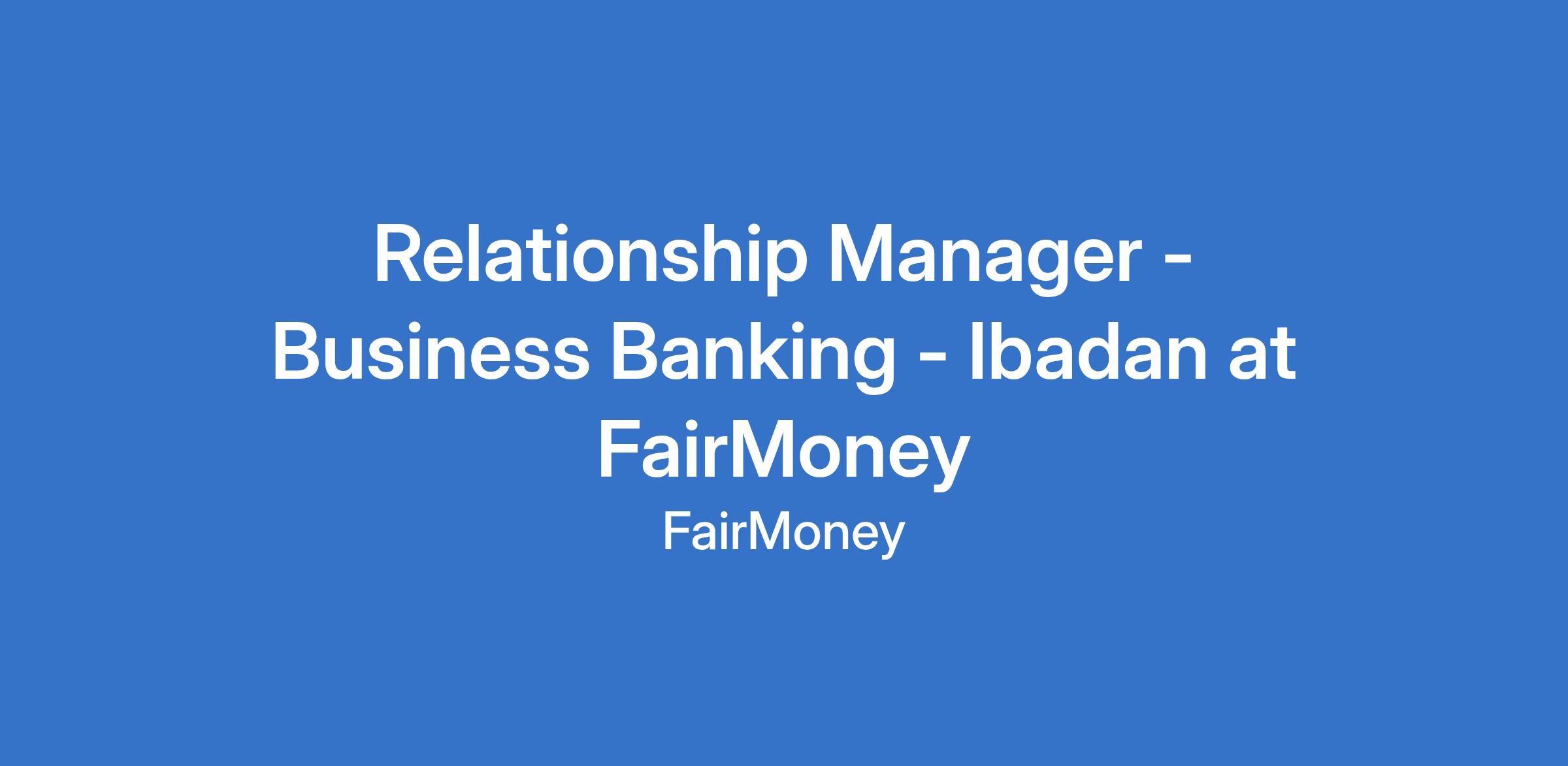Relationship Manager - Business Banking - Ibadan at FairMoney