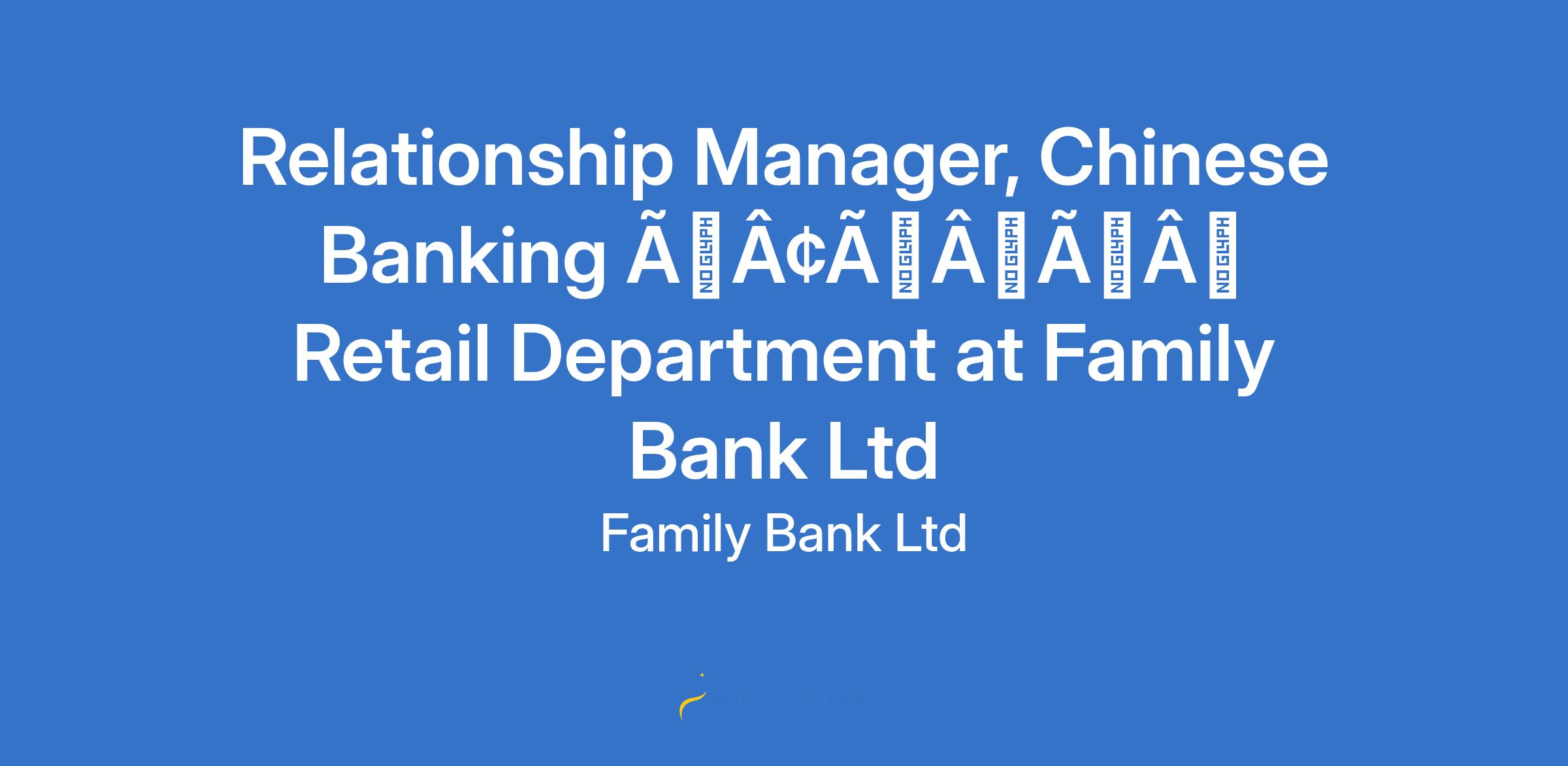 Relationship Manager, Chinese Banking âÃÂàRetail Department at Family Bank Ltd