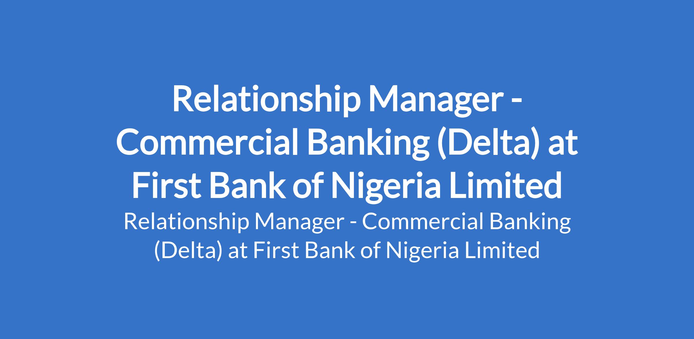First Bank of Nigeria Limited is recruiting to fill the position of: Relationship Manager - Commercial Banking. The position is located in Asaba and Warri - Delta State. Interested candidates should possess a First Degree or its equivalent in any discipline, preferably business-related with 3 years relevant banking (marketing and credit) experience.
