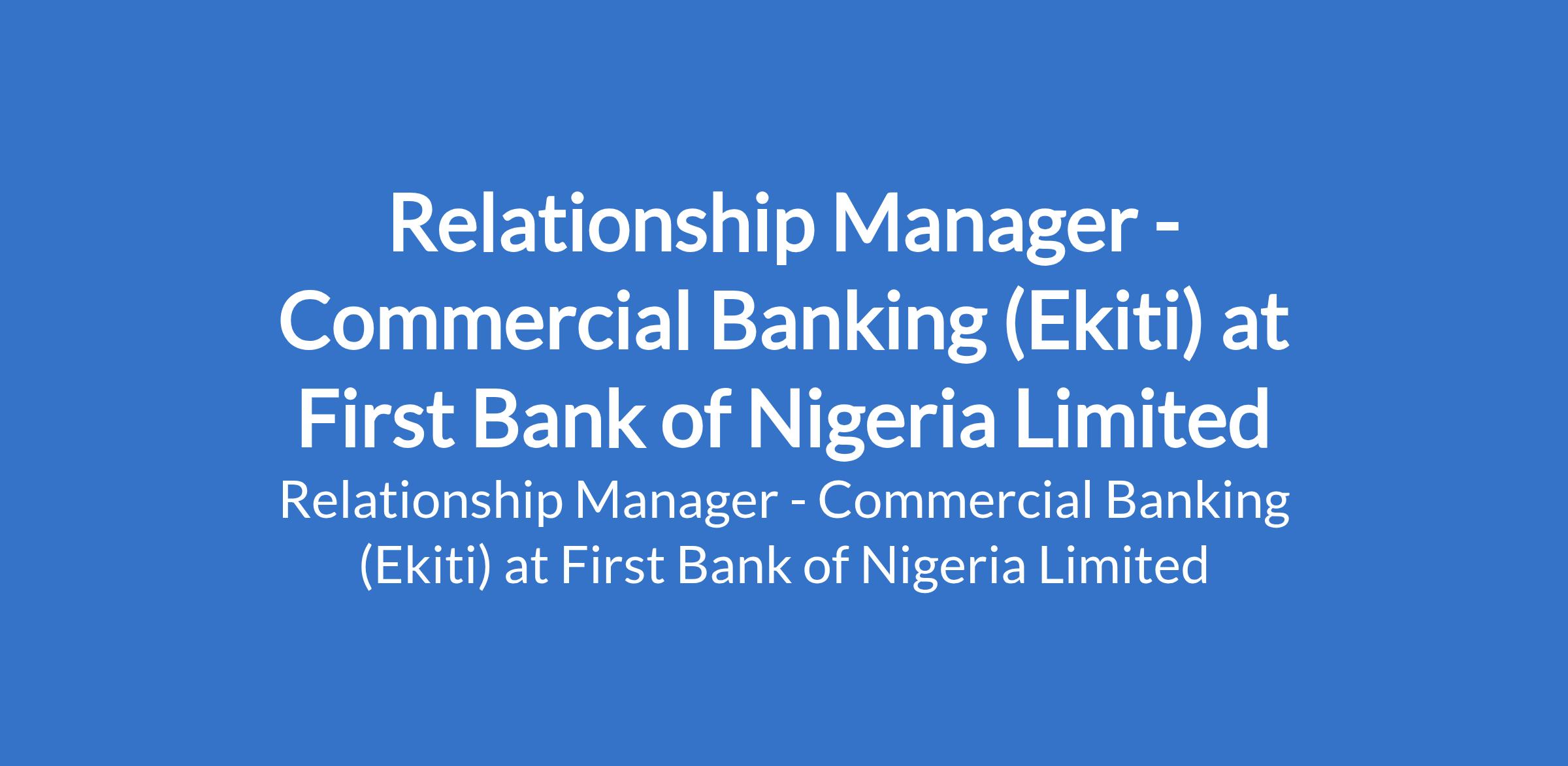First Bank of Nigeria Limited is recruiting to fill the position of: Relationship Manager - Commercial Banking. The position is located in Ado - Ekiti, Ekiti State. Interested candidates should possess a First Degree or its equivalent in any discipline preferably business-related with 3 years relevant banking (marketing and credit) experience.