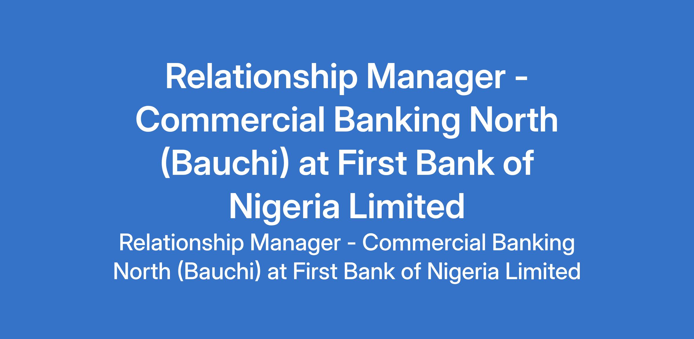 First Bank of Nigeria Limited is recruiting to fill the position of: Relationship Manager - Commercial Banking North. The position is located in Bauchi State. Interested candidates should possess a First Degree or its equivalent in any discipline preferably business-related with 3 years relevant banking (marketing and credit) experience.