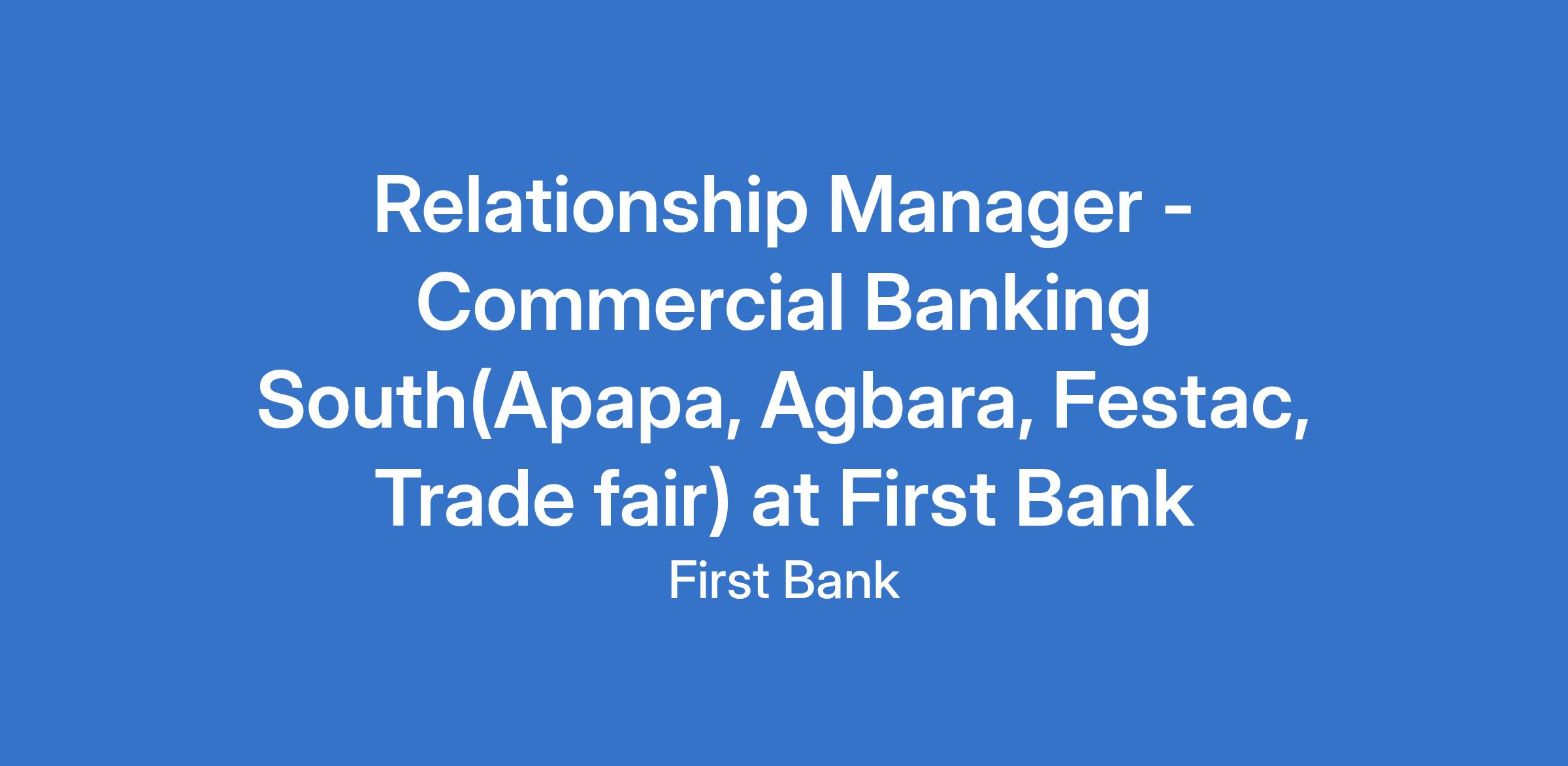 Relationship Manager - Commercial Banking South(Apapa, Agbara, Festac, Trade fair) at First Bank
