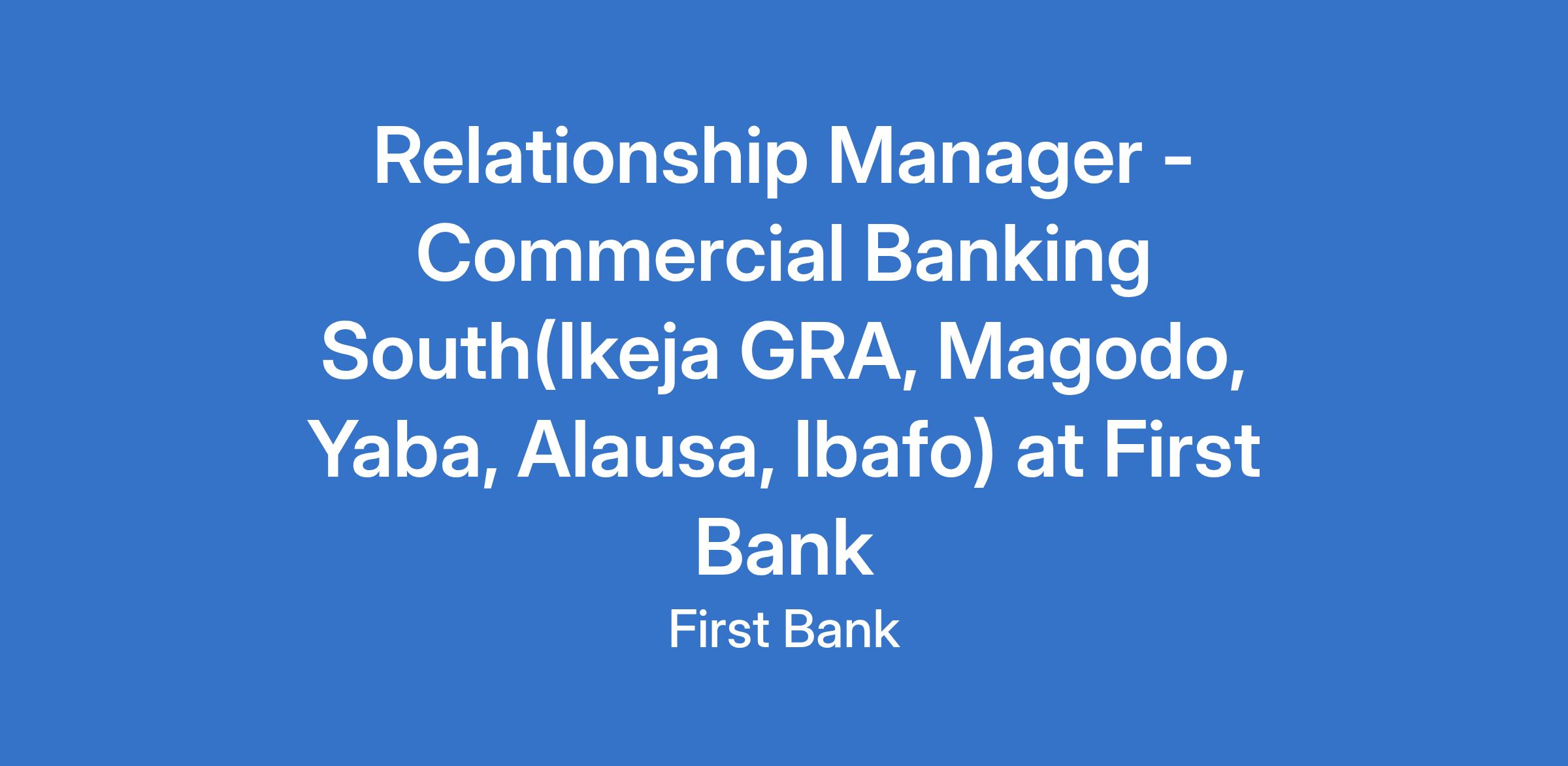Relationship Manager - Commercial Banking South(Ikeja GRA, Magodo, Yaba, Alausa, Ibafo) at First Bank