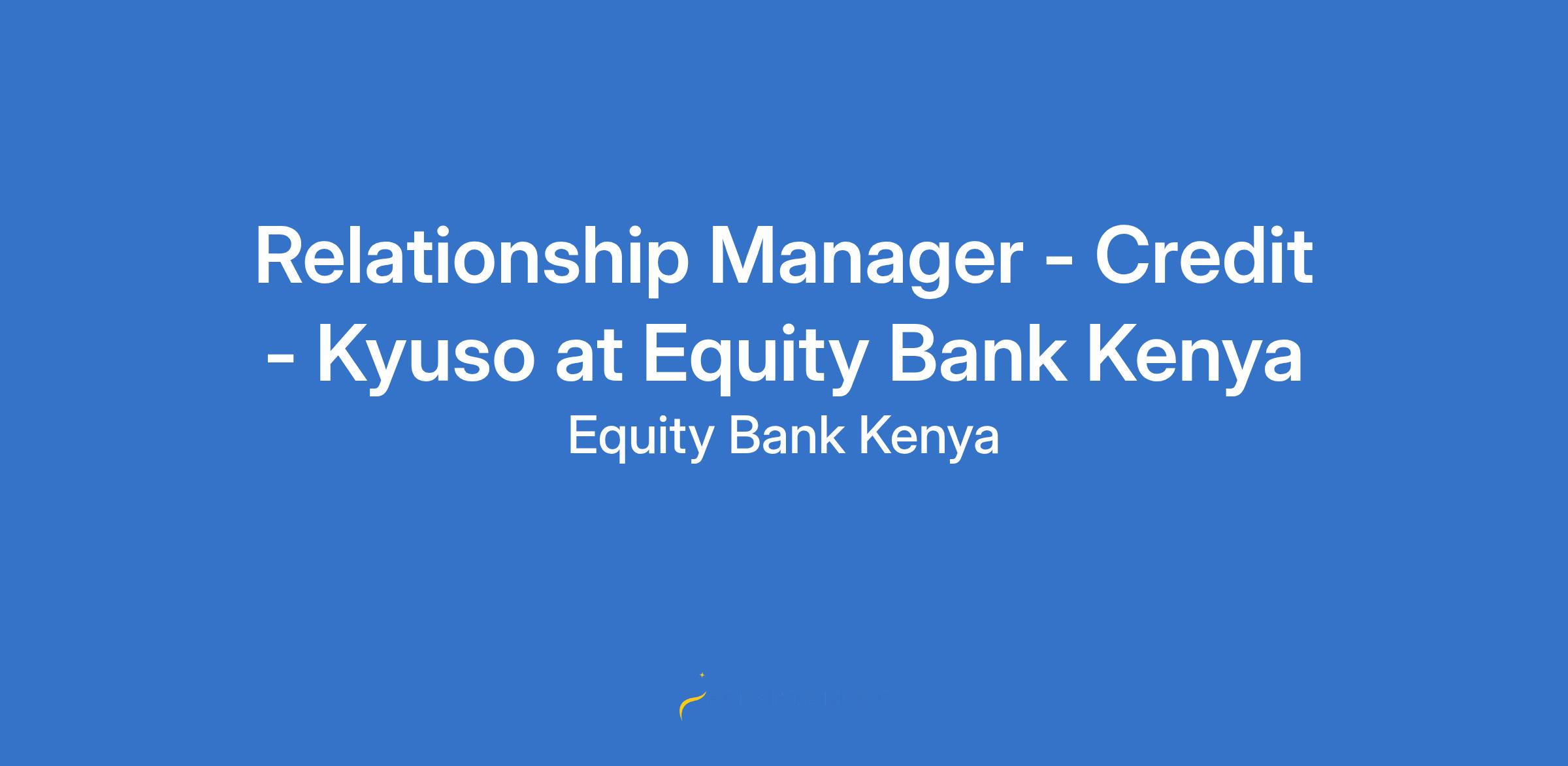 Relationship Manager - Credit - Kyuso at Equity Bank Kenya