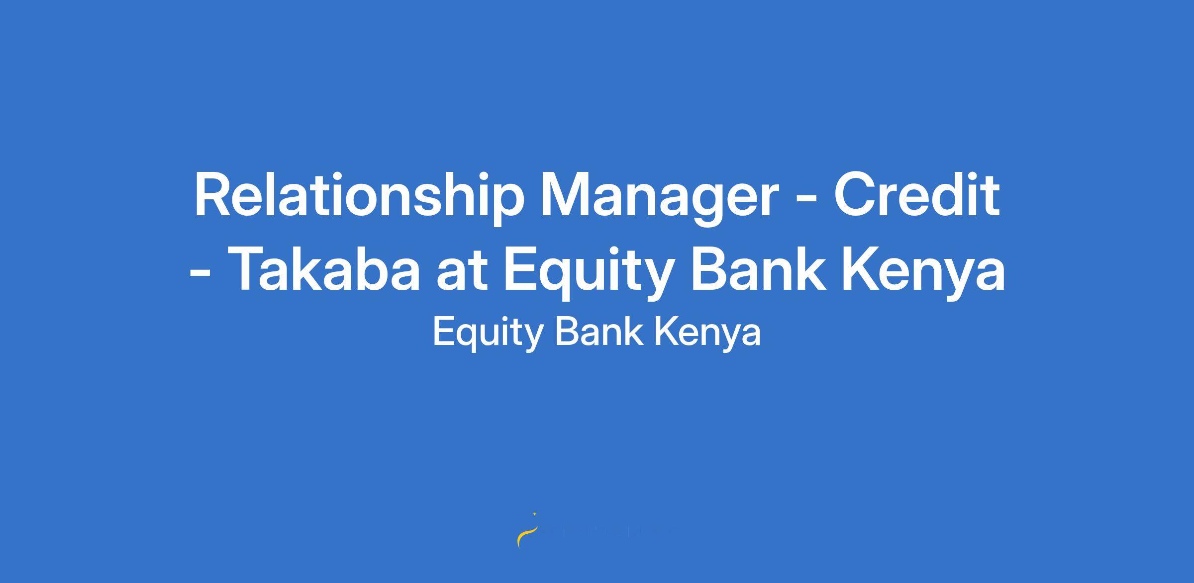 Relationship Manager - Credit - Takaba at Equity Bank Kenya