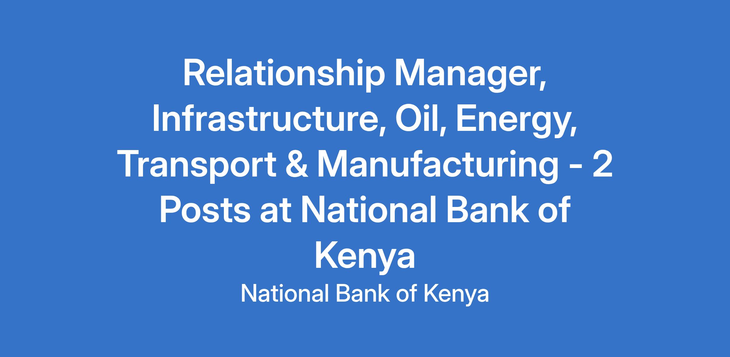 Relationship Manager, Infrastructure, Oil, Energy, Transport & Manufacturing - 2 Posts at National Bank of Kenya