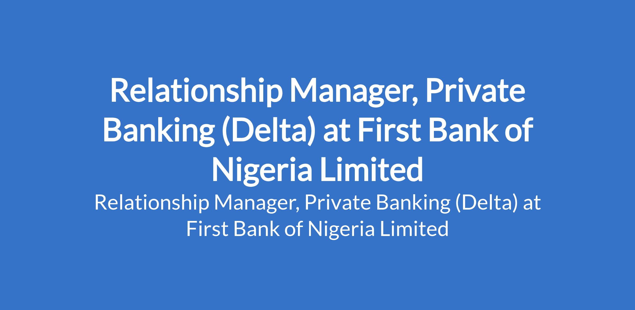 First Bank of Nigeria Limited is recruiting to fill the position of: Relationship Manager, Private Banking. The position is located in Warri, Delta State. Interested candidates should possess a First Degree or its equivalent in any discipline preferably business-related (minimum of B.Sc. Second-Class Lower / HND Upper Credit) with prior Banking experience in a market facing role with minimum of 3-7 years of experience as a Relationship Manager.