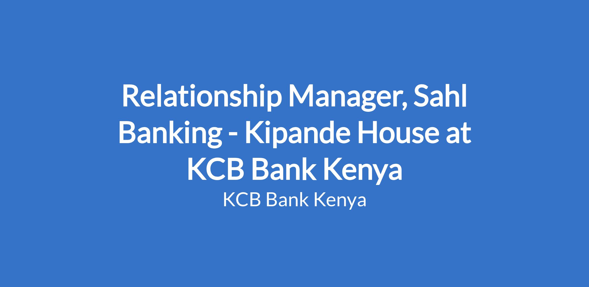 Relationship Manager, Sahl Banking - Kipande House at KCB Bank Kenya
