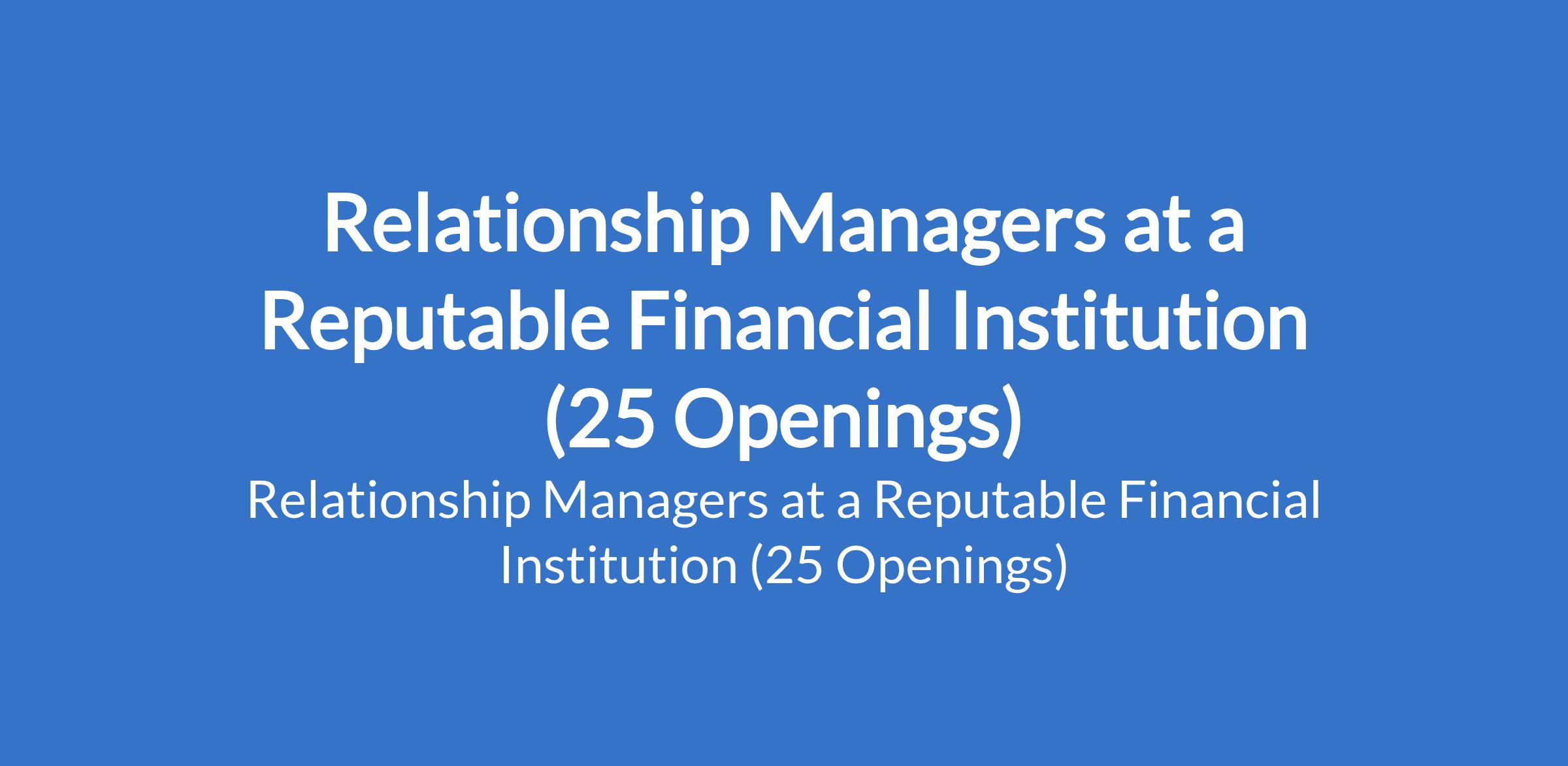 A reputable Financial Institution is recruiting to fill the position of: Relationship Manager. The position is located in Abuja, Minna - Niger, Asaba - Delta, Port Harcourt - Rivers, Lagos, Owerri - Imo, Bayelsa, Kano, Kaduna, Jos - Plateau, Abeokuta, Ijebu Ode - Ogun, Ilorin - Kwara, Oshogbo - Osun, Ibadan - Oyo, Uyo - Akwa Ibom, Calabar - Cross River, Benin - Edo, Akure - Ondo, Lokoja - Kogi, Warri - Delta, Umuahia - Abia, Abule-egba, Ikorodu - Lagos and Lafia - Nasarawa States. Interested candidates should possess an HND or B.Sc Degree in any discipline with a minimum of 2 years of cognate experience.