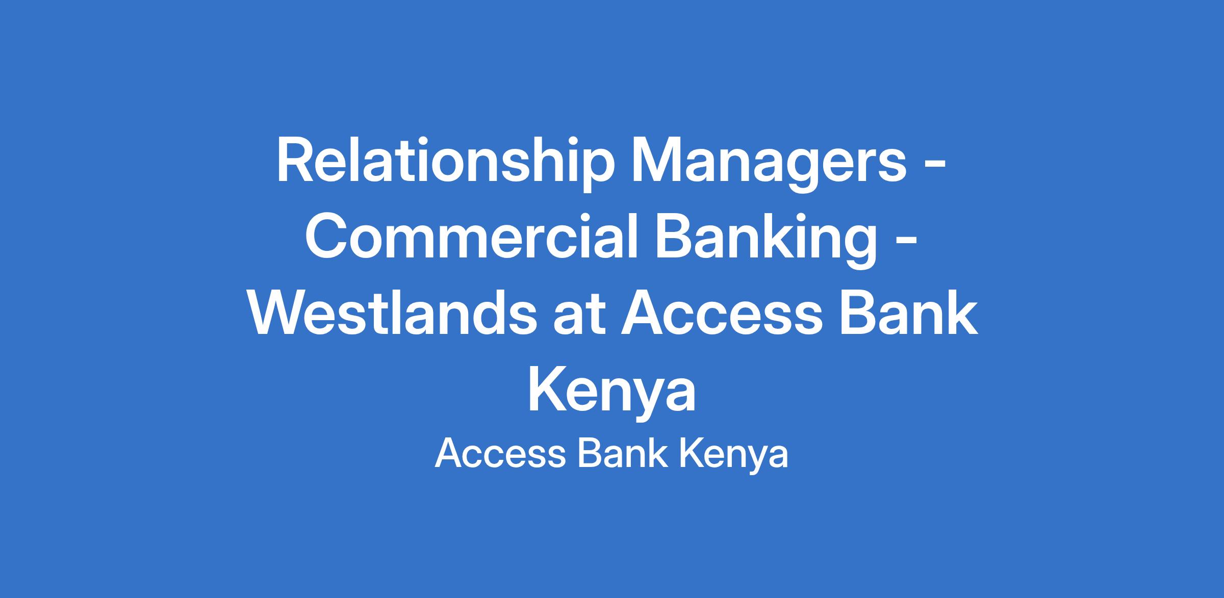 Relationship Managers - Commercial Banking - Westlands at Access Bank Kenya