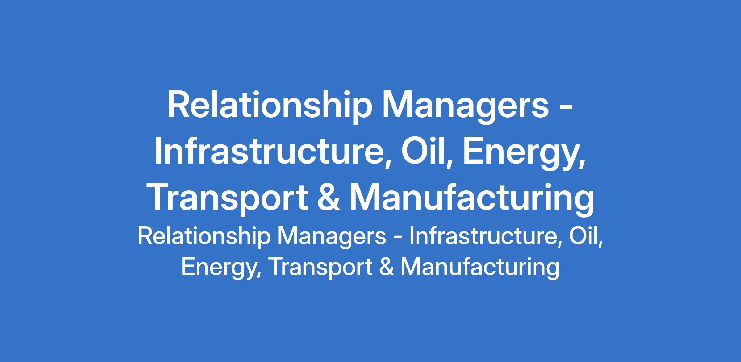 Relationship Managers - Infrastructure, Oil, Energy, Transport & Manufacturing
