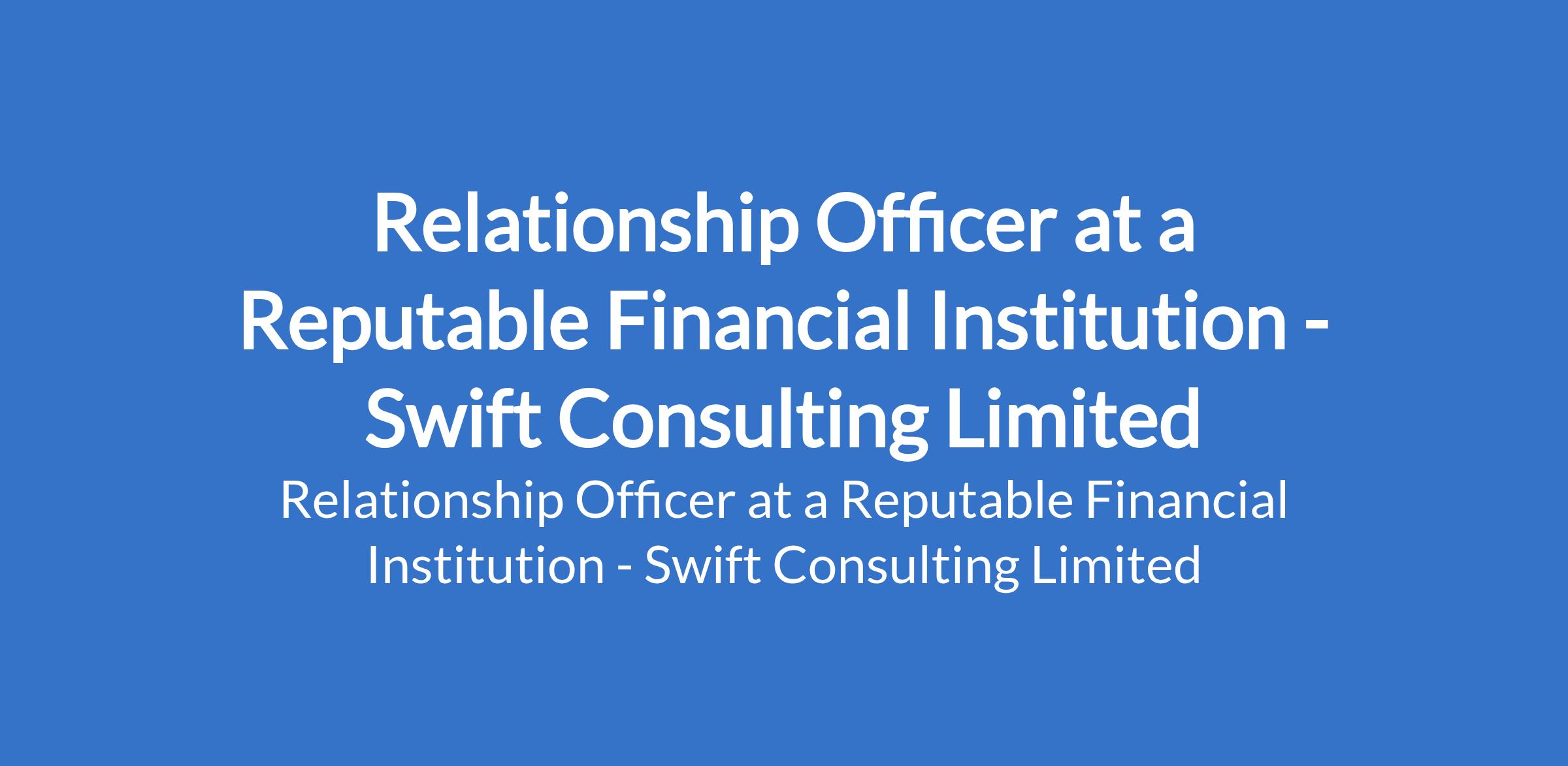 Swift Consulting Limited - Our client, a reputable financial institution, is recruiting to fill the position of: Relationship Officer. The position is located in Apapa, Lagos State. Interested candidates should possess a Bachelors Degree in Business Administration, Finance, Economics, Marketing, or a related field with 13 years of experience in banking, sales, or customer relationship management (an added advantage).
