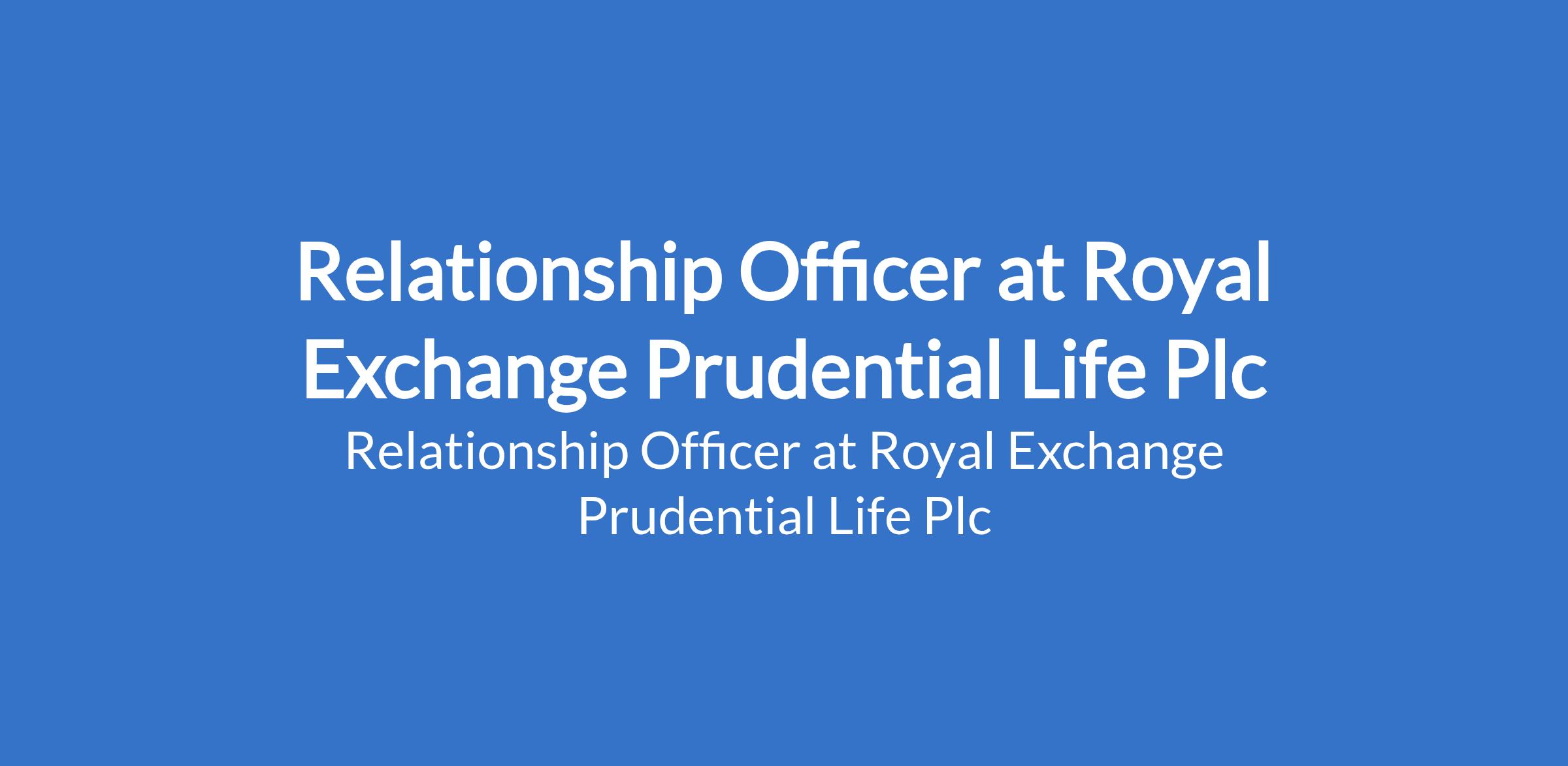 Relationship Officer at Royal Exchange Prudential Life Plc