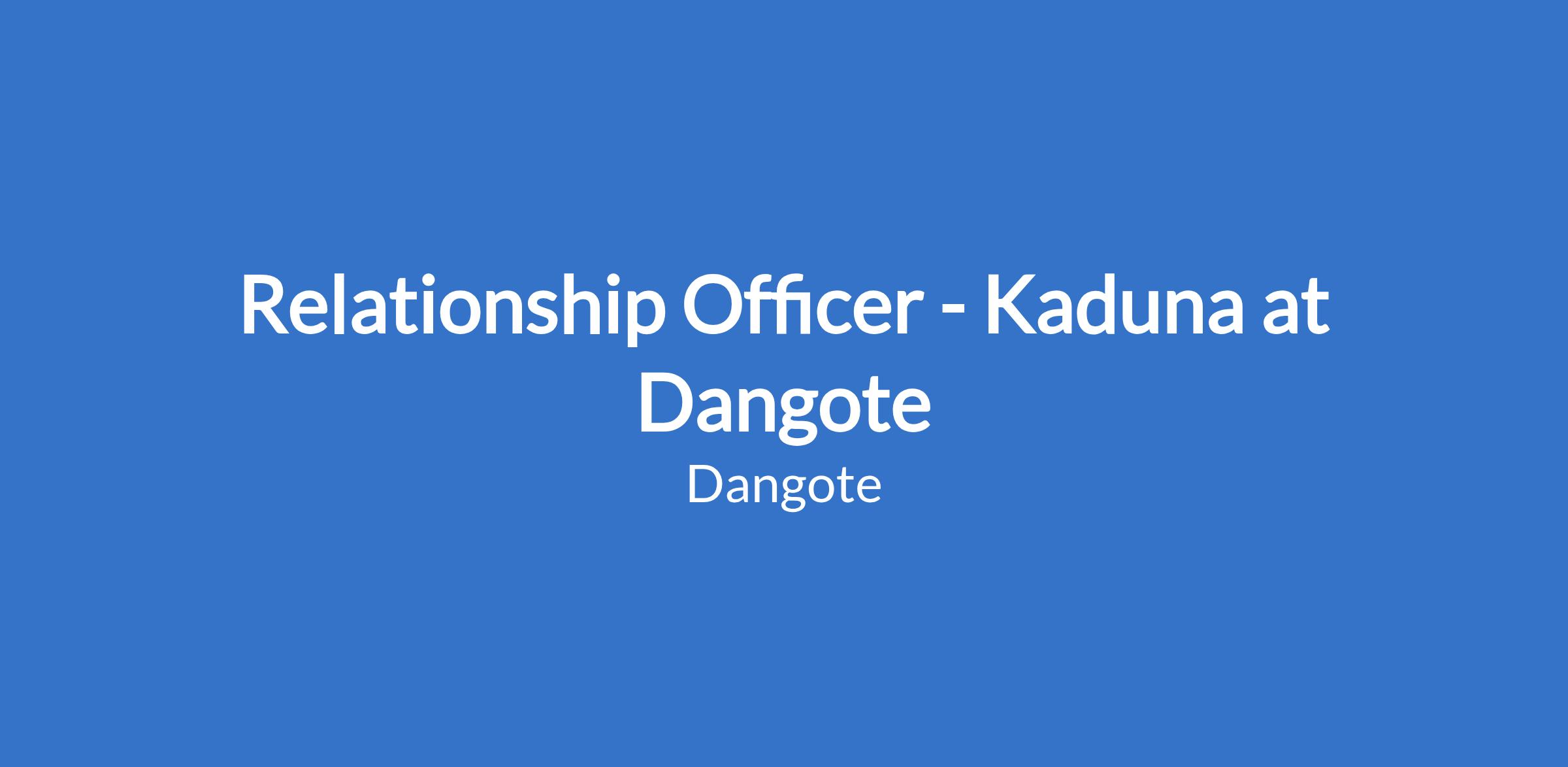 Relationship Officer - Kaduna at Dangote