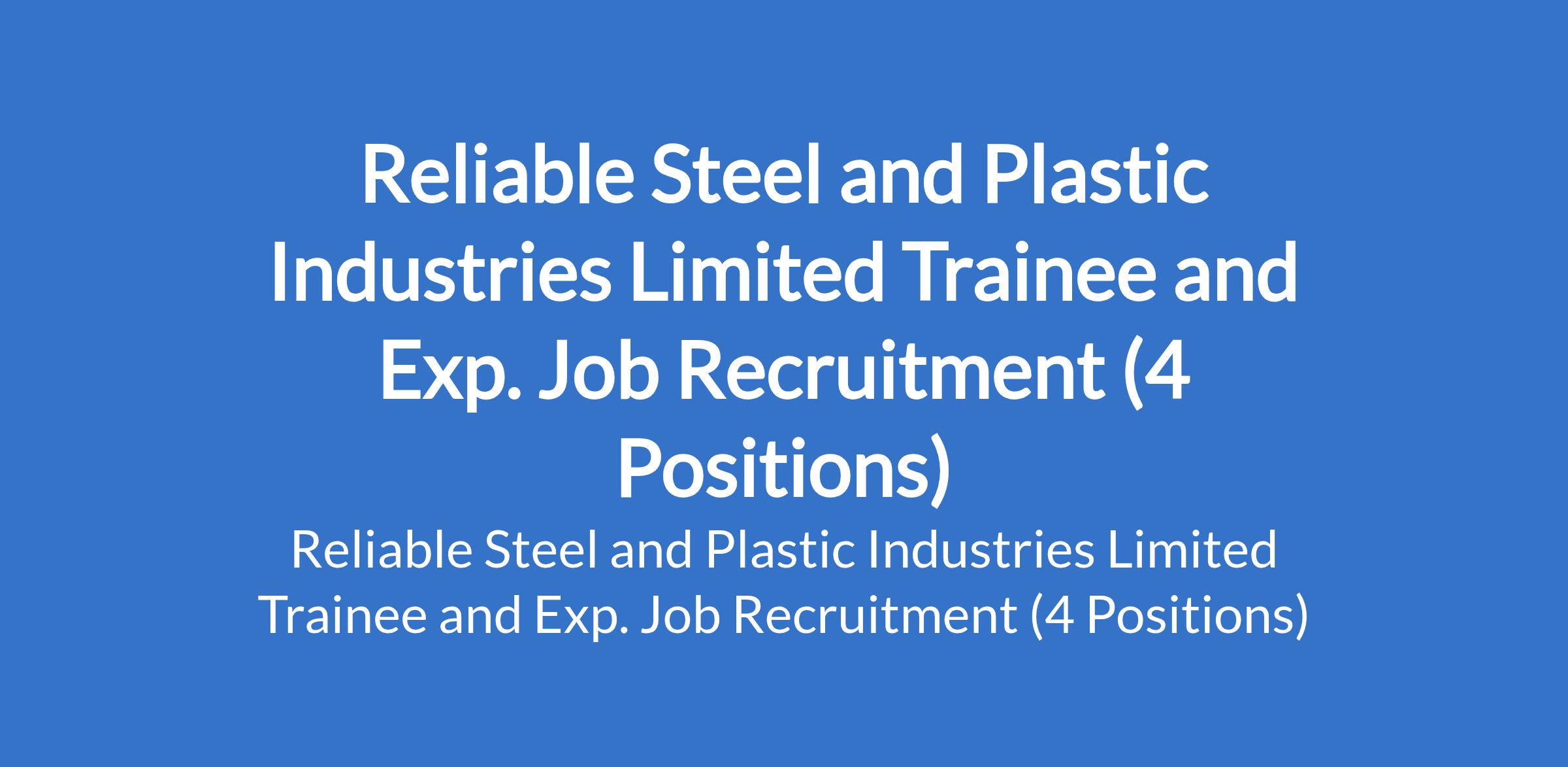 Reliable Steel and Plastic Industries Limited is recruiting suitable candidates to fill the following trainee and experienced positions in Anambra & Rivers States: Graduate Trainee - Logistic Department, Farm Account Officer; Superintendent - Production, Assembly, Quality Control and Supply Chain; and Production and Quality Control Supervisor (Graduate Trainee).