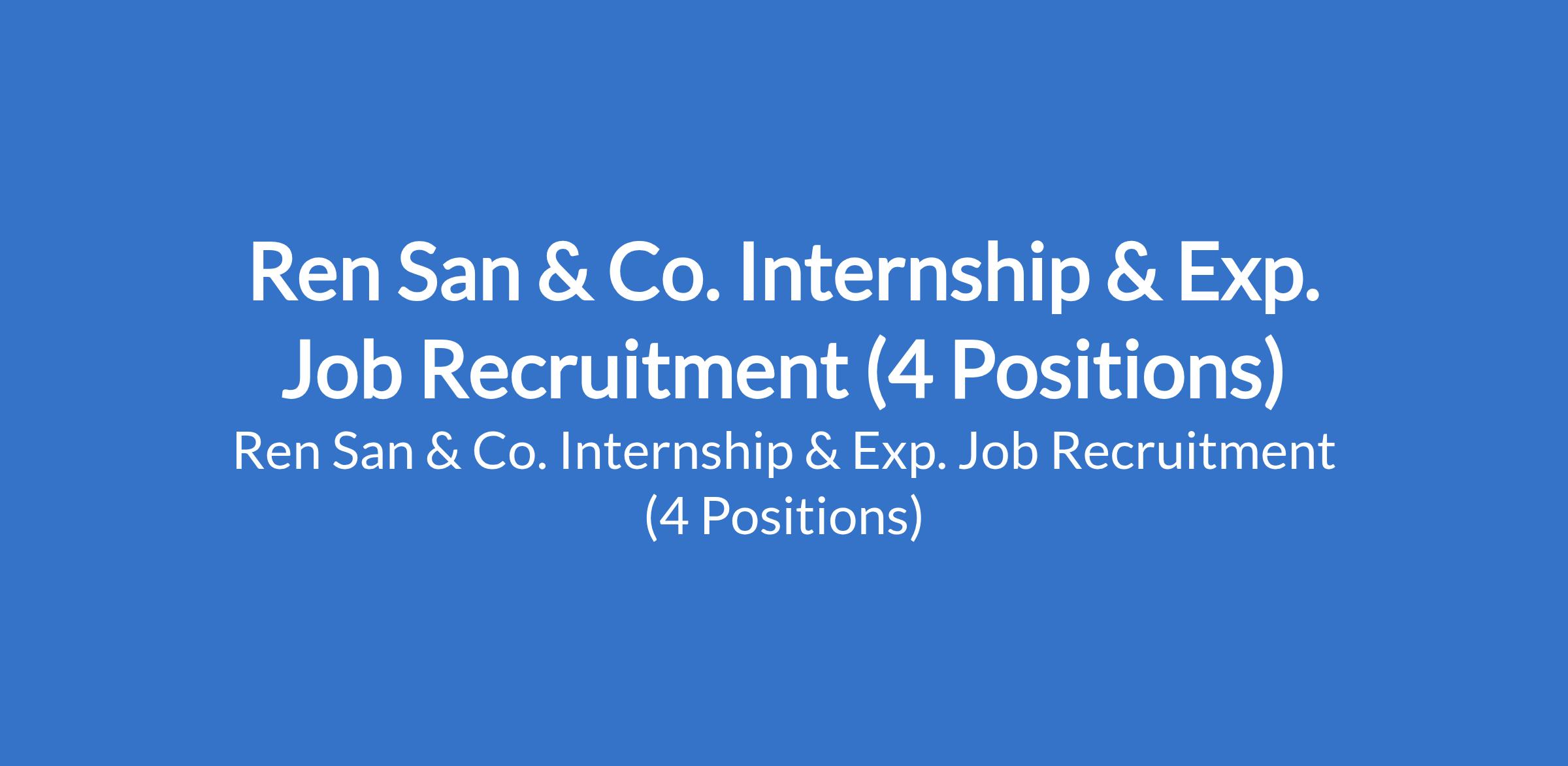 Ren San & Co. Internship & Exp. Job Recruitment (4 Positions)
