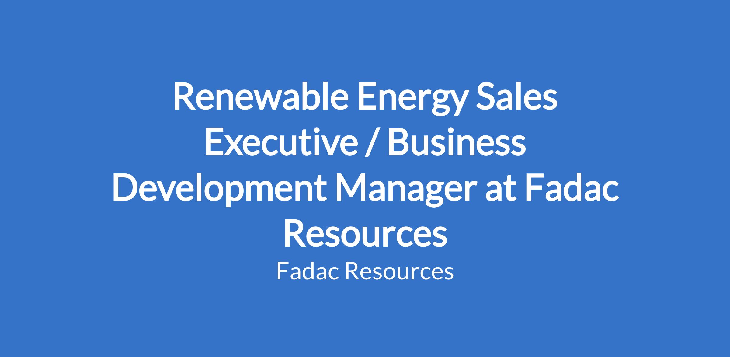 Renewable Energy Sales Executive / Business Development Manager at Fadac Resources