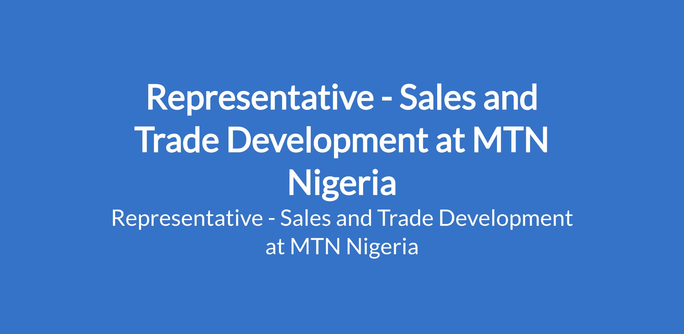 MTN Nigeria is recruiting to fill the position of: Representative - Sales and Trade Development. The position is located in Kano State. Interested candidates should possess a First Degree, preferably in Social Sciences with 1 - 3 years experience in an area of specialization, with experience working with others.