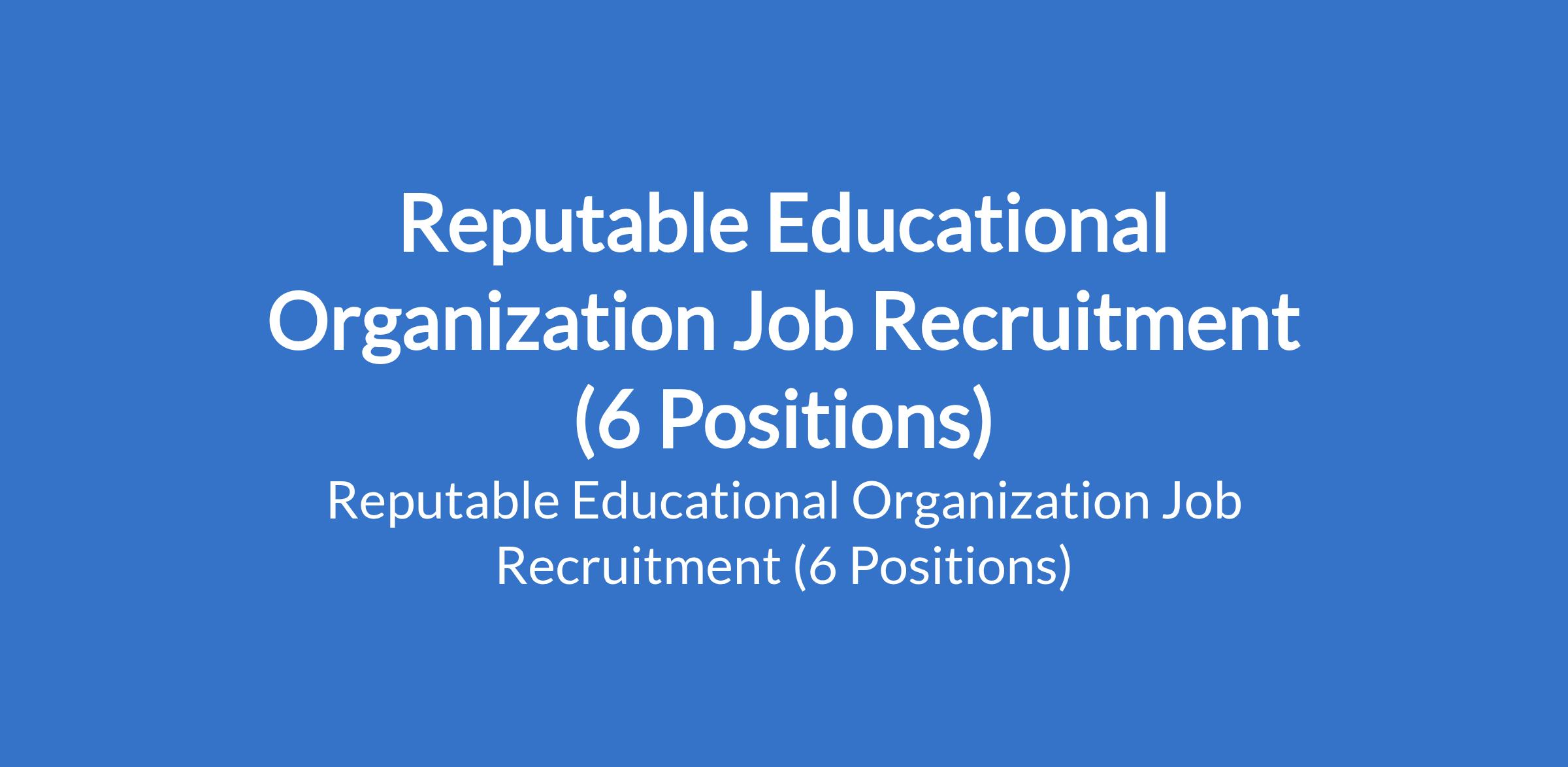 Reputable Educational Organization Job Recruitment (6 Positions)