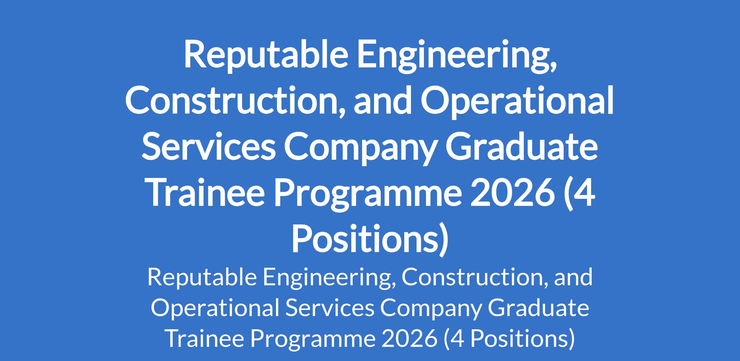 A reputable engineering, construction, and operational services company is recruiting suitably qualified candidates to fill the following graduate trainee positions: Graduate Trainee (Transport Management), Graduate Trainee (Quantity Surveying), Graduate Trainee (Architect), and Graduate Trainee (Civil Engineering).