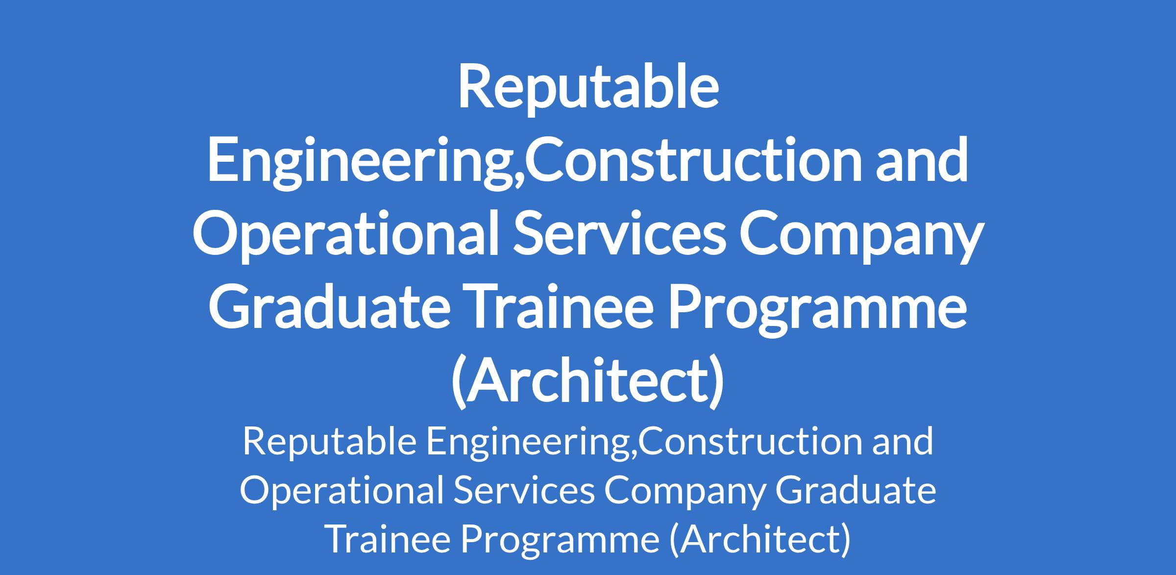 A reputable engineering, construction,and operational services company invites applications from suitable candidates for its Graduate Trainee Program (Architect). The programme is designed for driven and ambitious fresh graduates looking to kick-start their careers in a dynamic and professional environment. Interested candidates should possess a Bachelor's Degree (B.Sc / B.Tech or equivalent) in a relevant discipline with a minimum of Second Class Upper (2:1) from a recognized university.