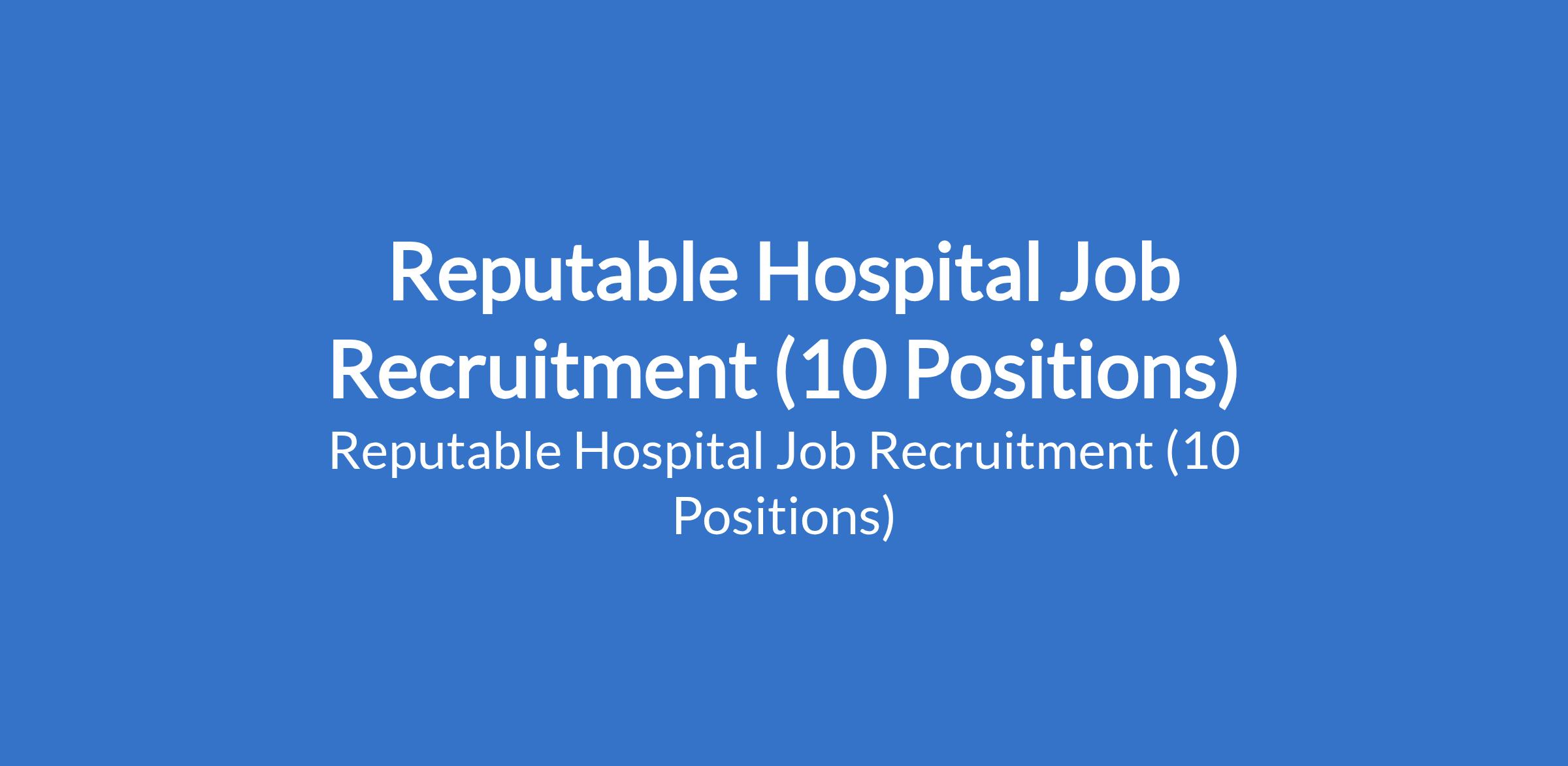 A Reputable Hospital is recruiting suitably qualified candidates to fill the following positions in Lagos State: Caterer / Cook, Matron / Nursing Sister, Medical Record Clerk, Laboratory Technician / Assistant, Pharmacy Technician / Pharmacy Assistant, Account Officer, Human Resources Officer, Medical Doctor, Admin / HMO Officer, and Sonographer.